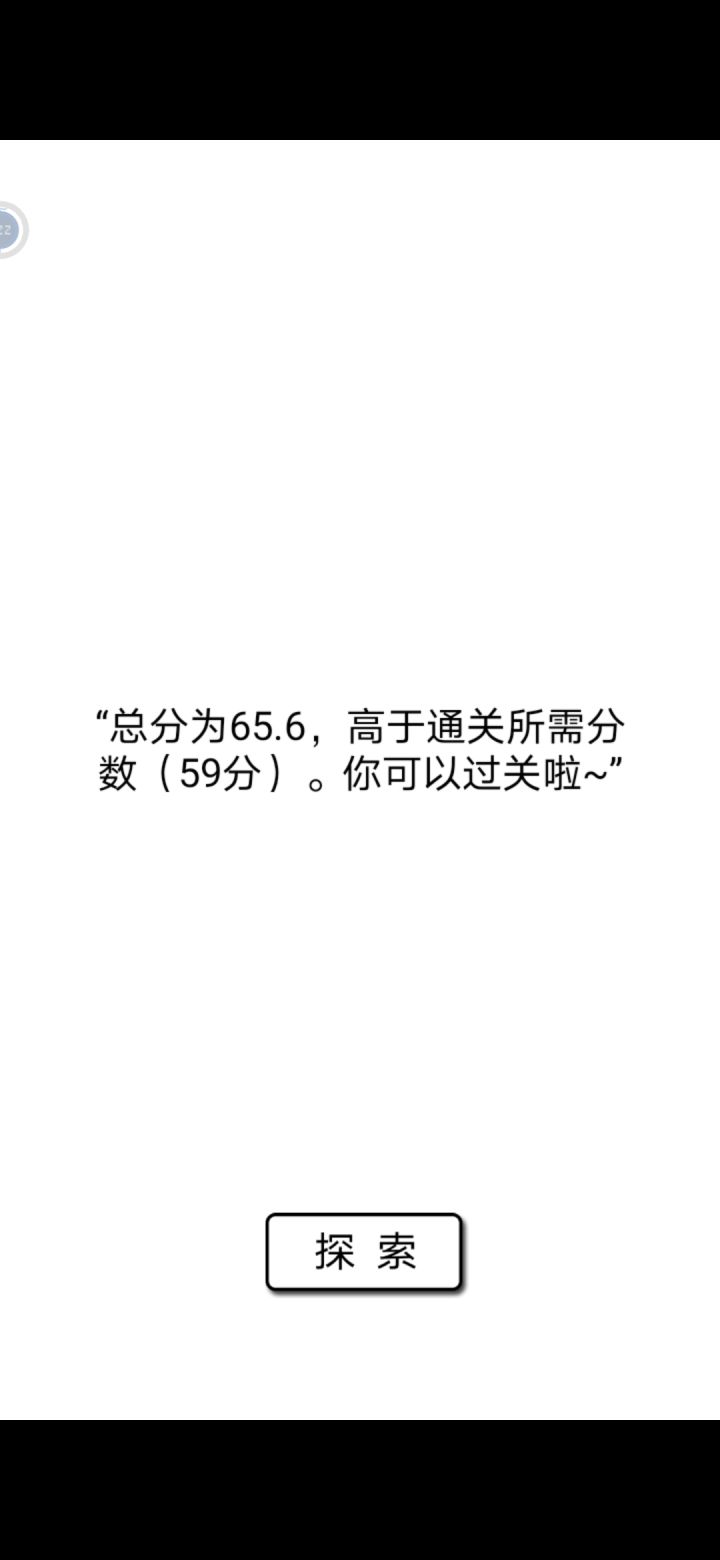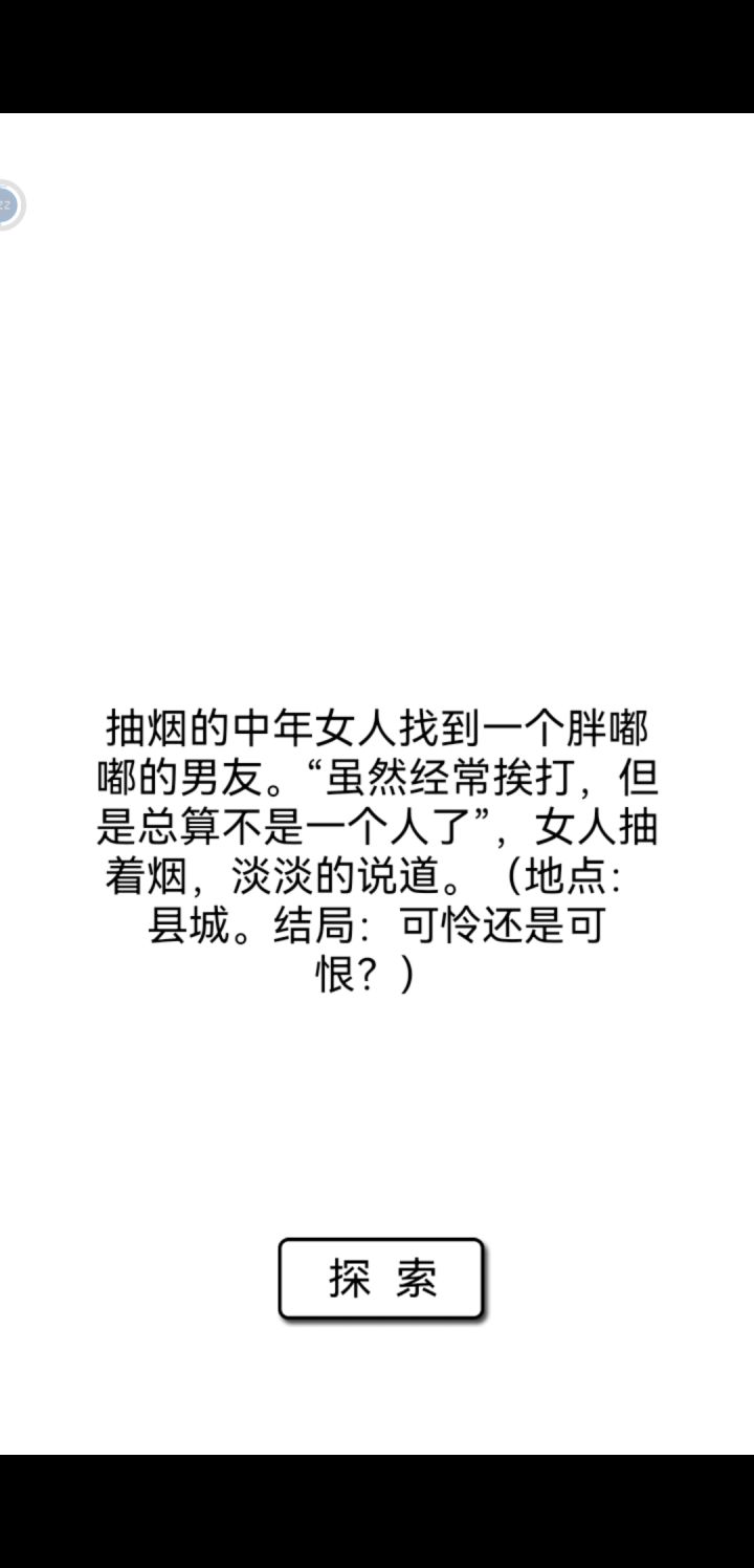 一天极速通关了,说实话,这类游戏是第一次玩,现在还没有太搞明白→_→,但总体还是很有意思的,主人公也很有流浪的感觉,吃不上饭,没地方睡觉,还要抢东西被别人暴揍,我能打过的人屈指可数。我就碰见了晓月两次😥,和碧瑶交流比较多,但是好感度也没有变正,最后选择了回家。感谢作者为这个游戏做出的努力