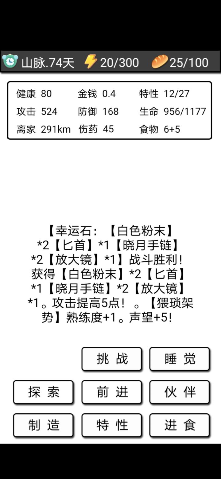 山脉里只能打猴子和野猪,其他打不赢,一级红夹克两级黑刀后一直前进到省城,黑曜石靠探索拿。晓月先不认识,290km时通缉犯难打,而且进省城后晓月她爸也难打,很拖节奏。