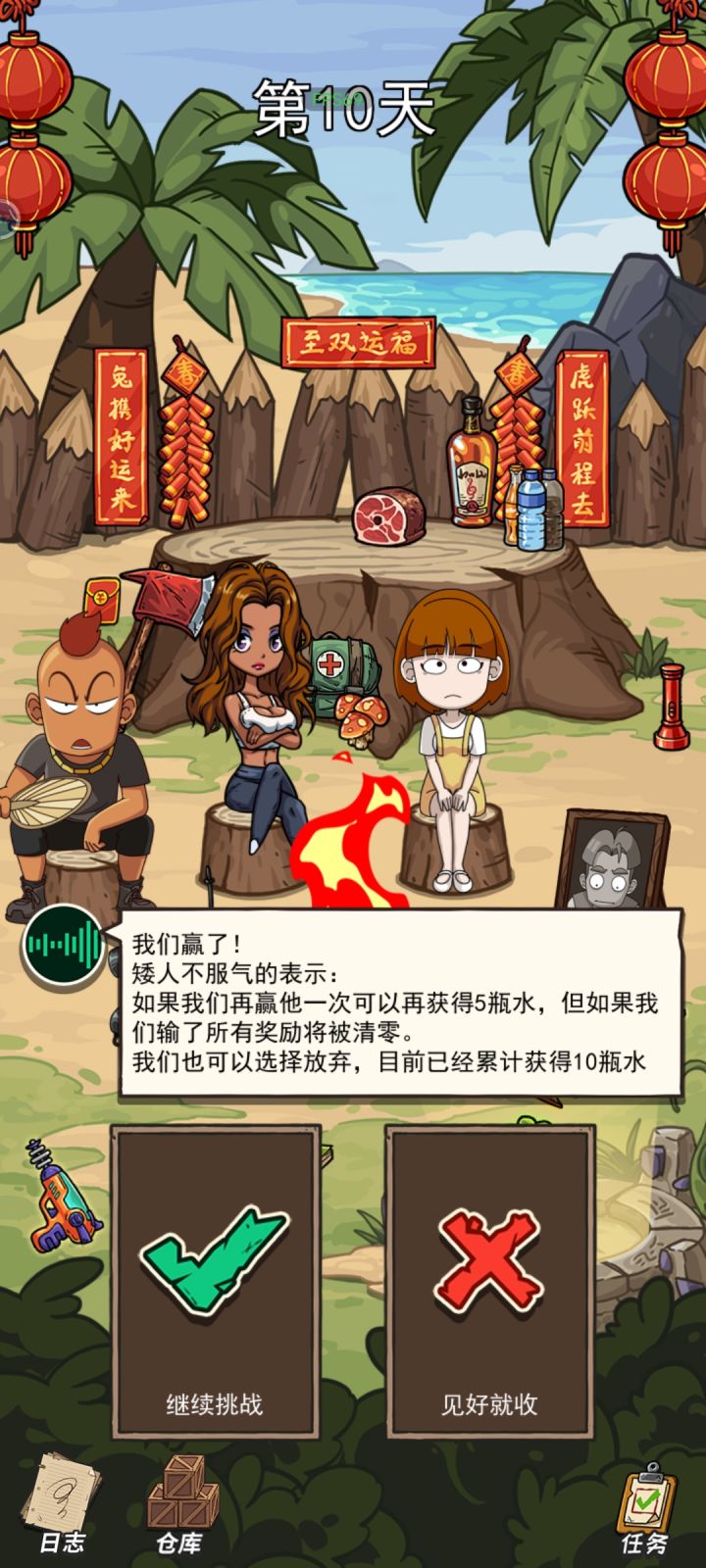 今天偶遇矮人猜拳比赛,这个连续型的猜拳拳赛可以获得大量的水,如果手气不好的话,我建议大家前两局先出拳头保底,4瓶水,如果自己的水够用的话,可以继续划拳探索#攻略