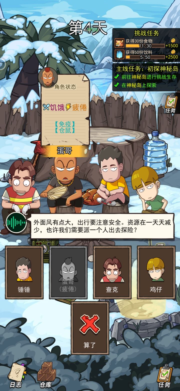 只剩一个人并出去探险后就卡死了,日志打不开,也没有事件,也不能结束