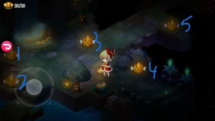主要看还是有人在问,我就想直接写一个吧,这样大家也方便看。这个的话其实相对手残党来说比较友好,虽然魔芋芋是挺可怕的,无数次刷脸过后,我发现了一个规律。就是,上下的南瓜灯成对点亮,死亡过后不会熄灭。(ps:我说的成对是点亮南瓜灯过后,出现的那个效果是一样的,才是成对的哟)接下来我把它点亮过后会出现的效果总结了一下,大家可以看一下。1是出现软泥怪2是视线缩小变暗3是摇杆方向颠倒4是出