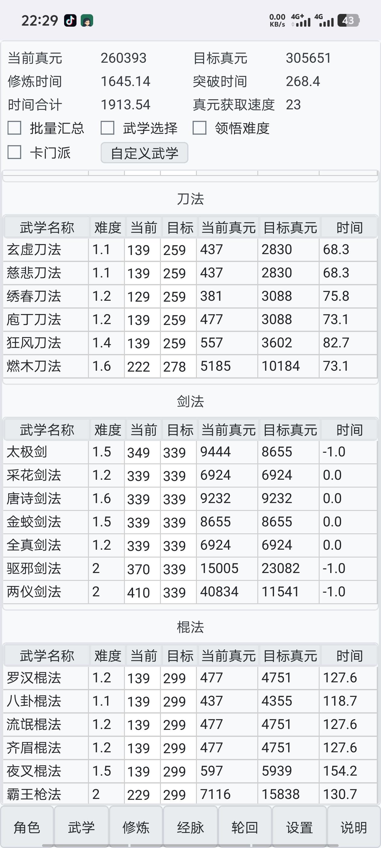 因为娃丢了所以现在看不了真元,拿计算器汇总了一下现在全部武学对比上周多了1.5w真元,可能是三个首门的原因吧有点不敢信能躺这么多
