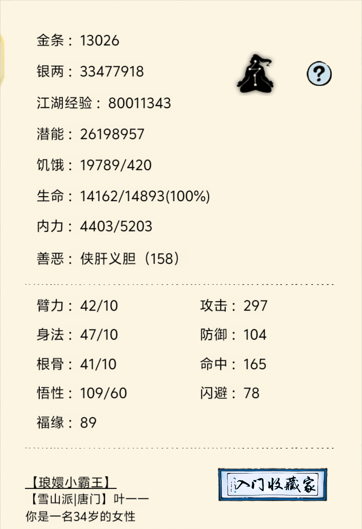 未轮进玉女用万花鞭 基本外功200级 轻内 150级 50块过福地18岁立马娶苍井 抓紧生孩子孩子出生不洗附加(反正不是7,废物不需要洗) 直接等孩子8岁 轮回啥武学都不带躺个1w真元就够了 1破1防2.1带一轮 玉女 万花鞭 鞭400 轻300 内200只打日常、扫荡福地、委托、这配置也能打打龙18岁立马随便娶个青出伴侣 直接生孩子 孩子8岁后就等400级单400一到