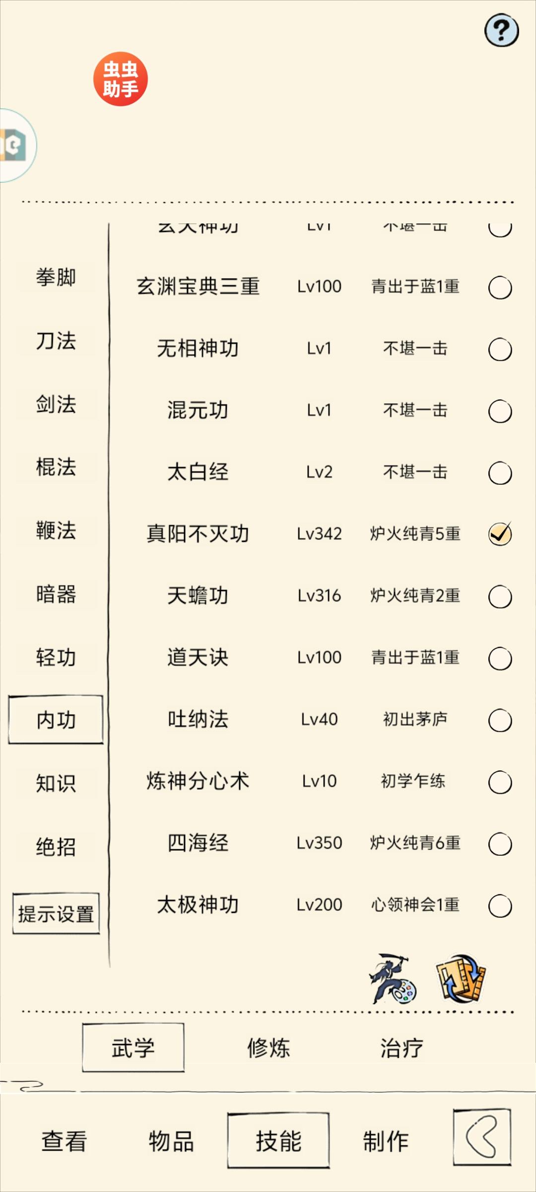 目前太极,计划真阳不灭400级后,出师雪山拿飞雪后,攒62~65万后三轮,悟性加带脉减免约29.5%,哪些内功需要散, 又要勾选哪些内功呀?攻略没看懂