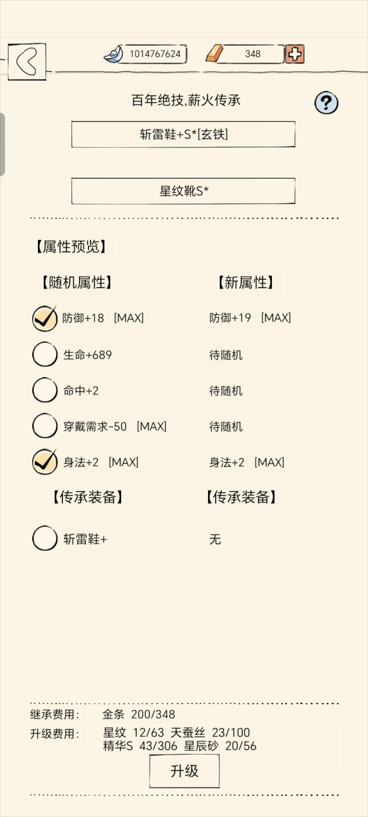 如果我不勾选下边这个传承装备,那我的斩雷鞋+会消失还是返到背包里