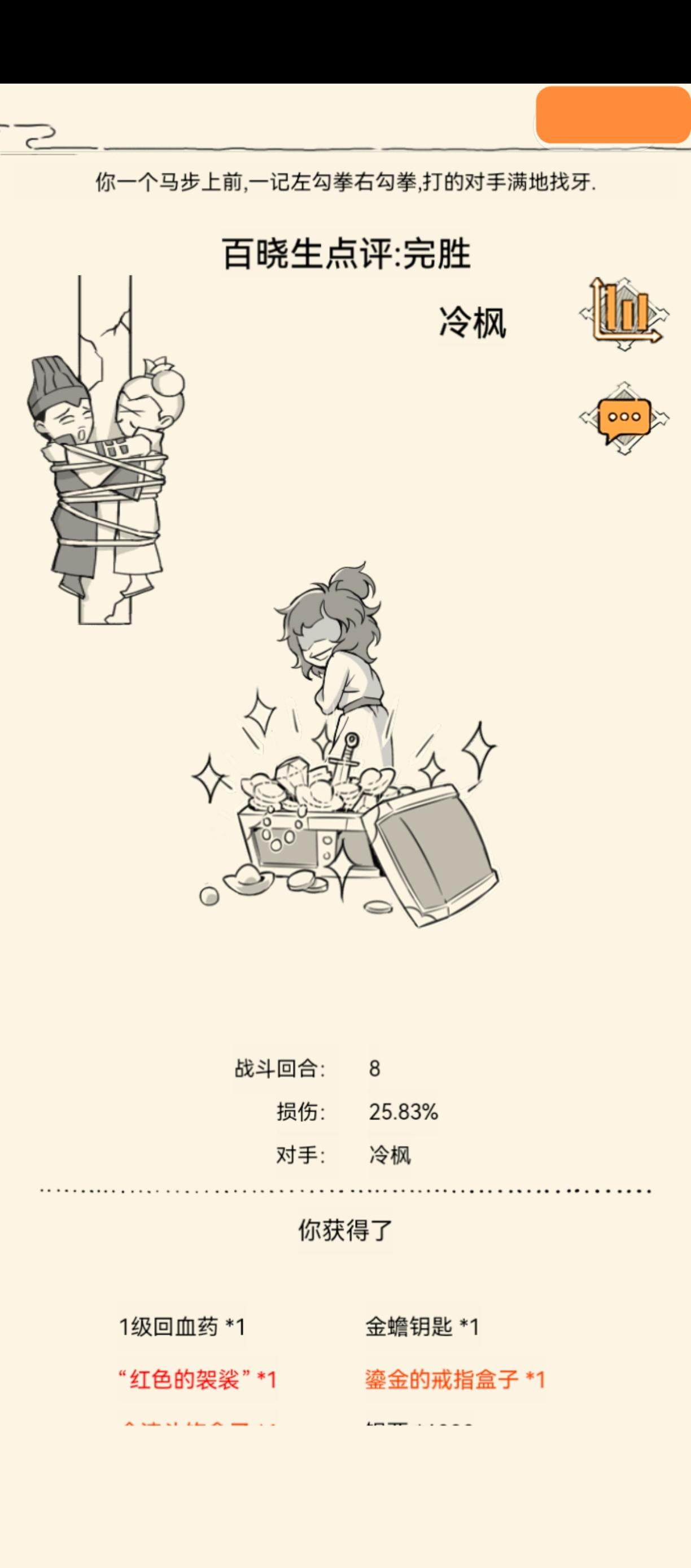 咸鱼党总二姨或者千蛛是比较稳的 实际千蛛也不稳,因为千蛛的防御面堪忧 二姨有剑阵格挡生存能力强了很多 二姨的剑反+剑灵还是可以的 无量不知道是不是改了,之前32回合都能s,现在24都是a,搞不懂 另外吸血套出现概率真心低,我每次想速杀追求伤害总能被3~4层npc打死 不过无所谓了,咸鱼能有个绿色奖杯就够了,不行就灰色奖杯 奖励大概,或许,应该能换满 无量没啥意思,让我深刻感觉到了武学的参差,尤其是