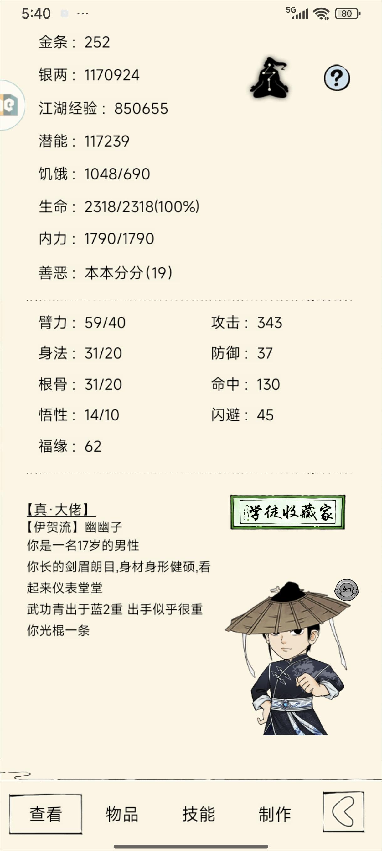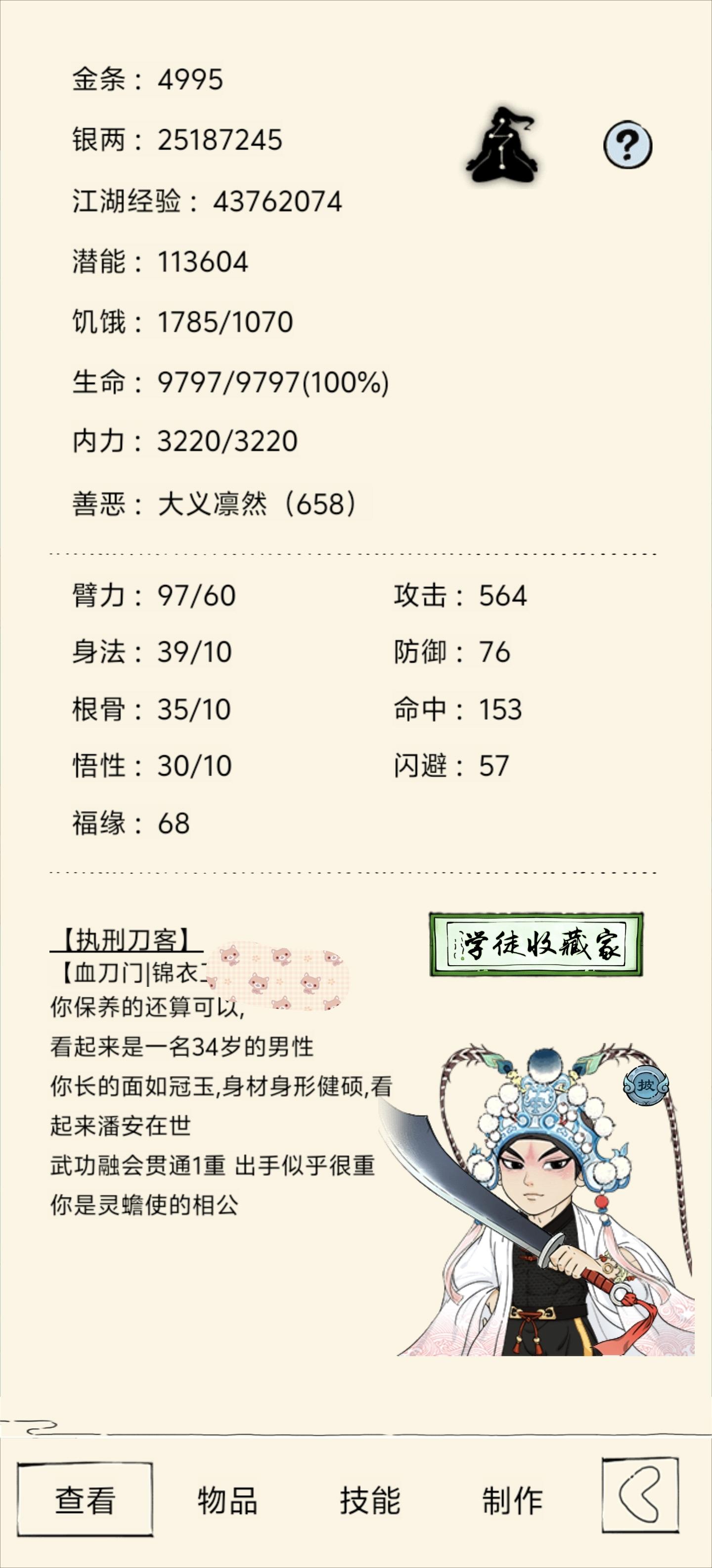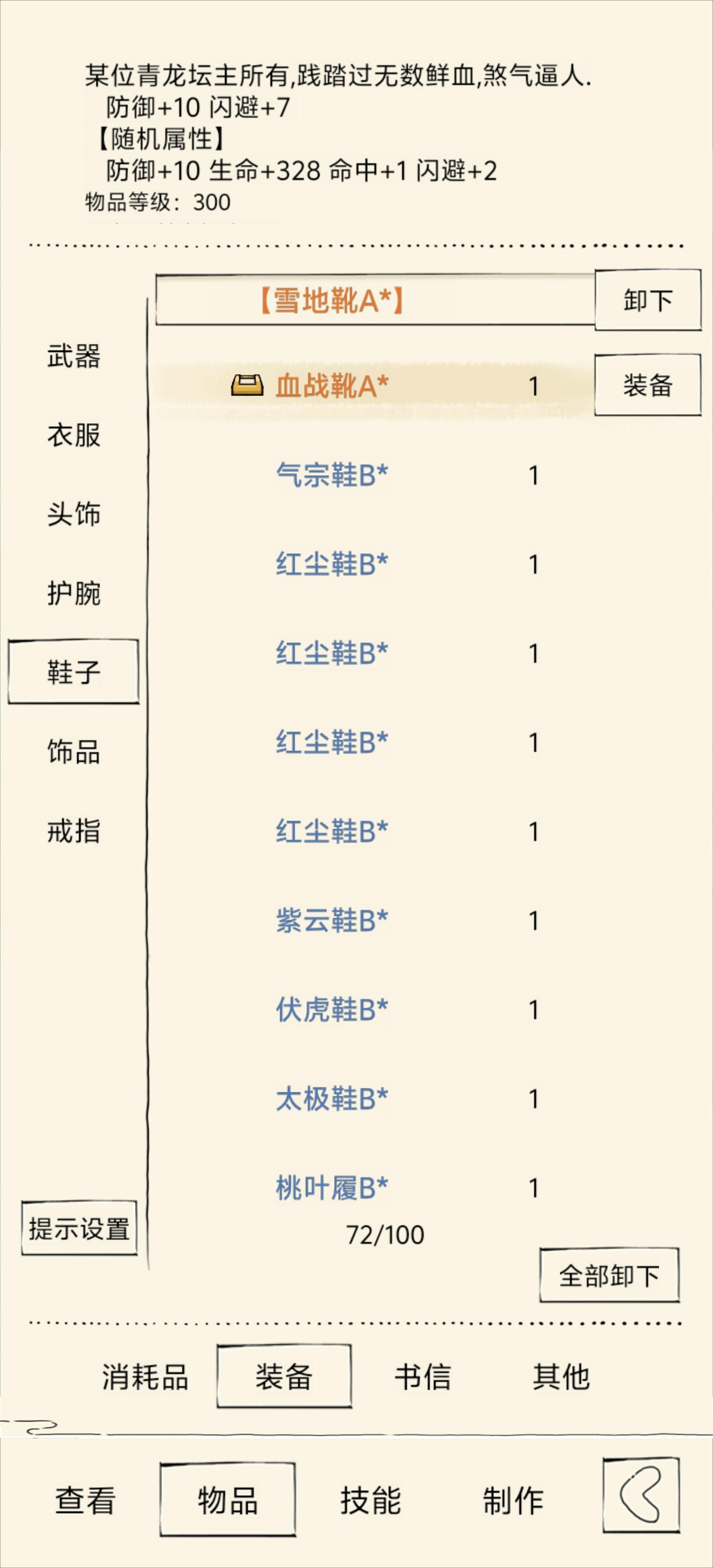 明天拿血魔轻功到300,有青蛇克星还要搞几个绝品雪莲,防御有点低明天大概到82防御,装备主要有点烂,个人比较求稳