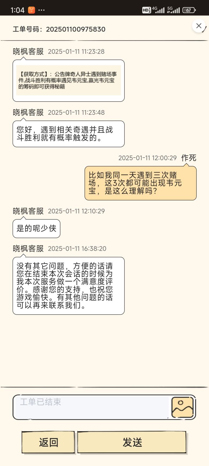 关于赌场奇遇,客服的答复是:一天内多次遇到赌场,任何一次都有机会触发韦元宝,不仅限于第一次。QQ群内大佬们的说法是:一天内多次遇到赌场,只有第一次赌场才有几率遇到韦元宝。