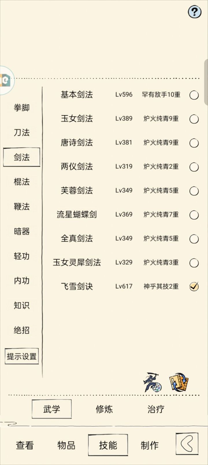 看完素心剑辟邪剑领悟,再结合流星剑领悟,以及后续要出的飞雪特效。我认为飞雪领悟可以这么搞: 领悟1:命中➕30(虽然没啥用,但是多少对六空有所交代) 领悟2:冰冻控制,飞雪每次攻击,无论命中或闪避,必定给敌人附加1层寒气(或其他词),6层寒气即获得一回合冰冻,冰冻即无法行动;内功为寒玉功时,每次攻击可附加2层,即雪花六出可给对方两回合冰冻,但还是会空。另外寒气可以考