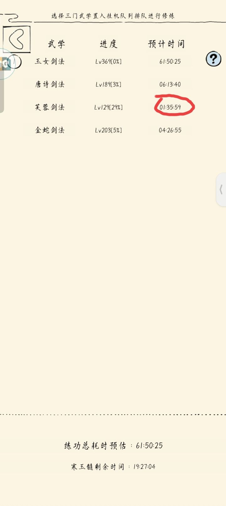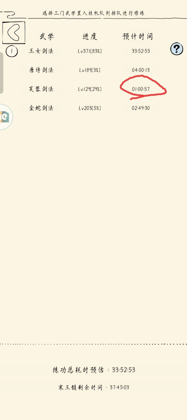 昨天早上玉女剑修完之后,让我有点震惊,一躺床上发现修炼武学时间变长了,但我的加成一个都没少,这是咋回事啊?直到现在第二天凌晨三点多才变回来