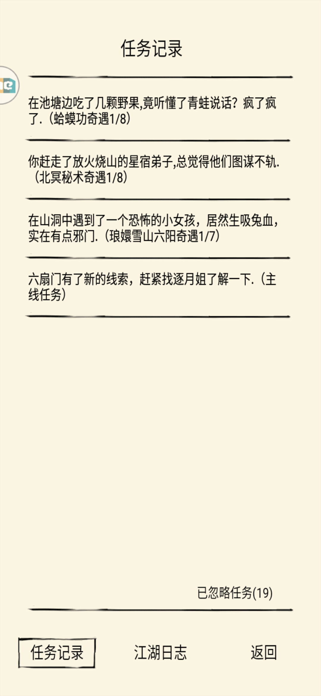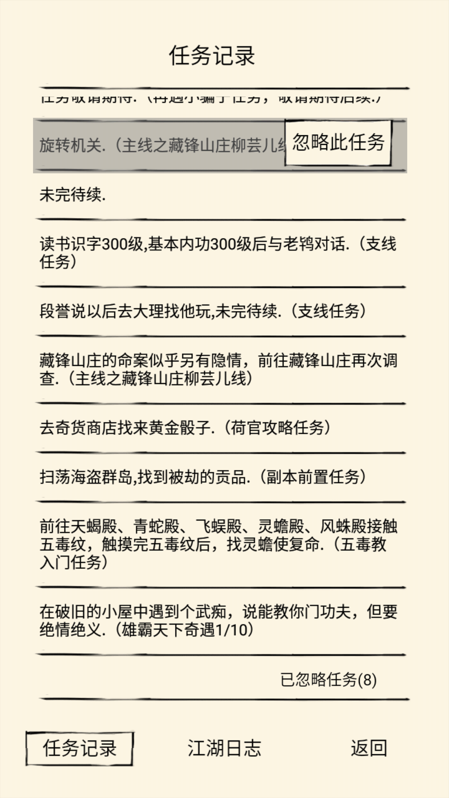 萌新想问一下前期有多少隐藏剧情我玩了三天没买先天点,现在13岁丐帮武学略有小成无意中触发了歆话字典那个隐藏任务,就想来问问还有没有容易错过的剧情。(我强迫症都想做完)求各位大佬指点