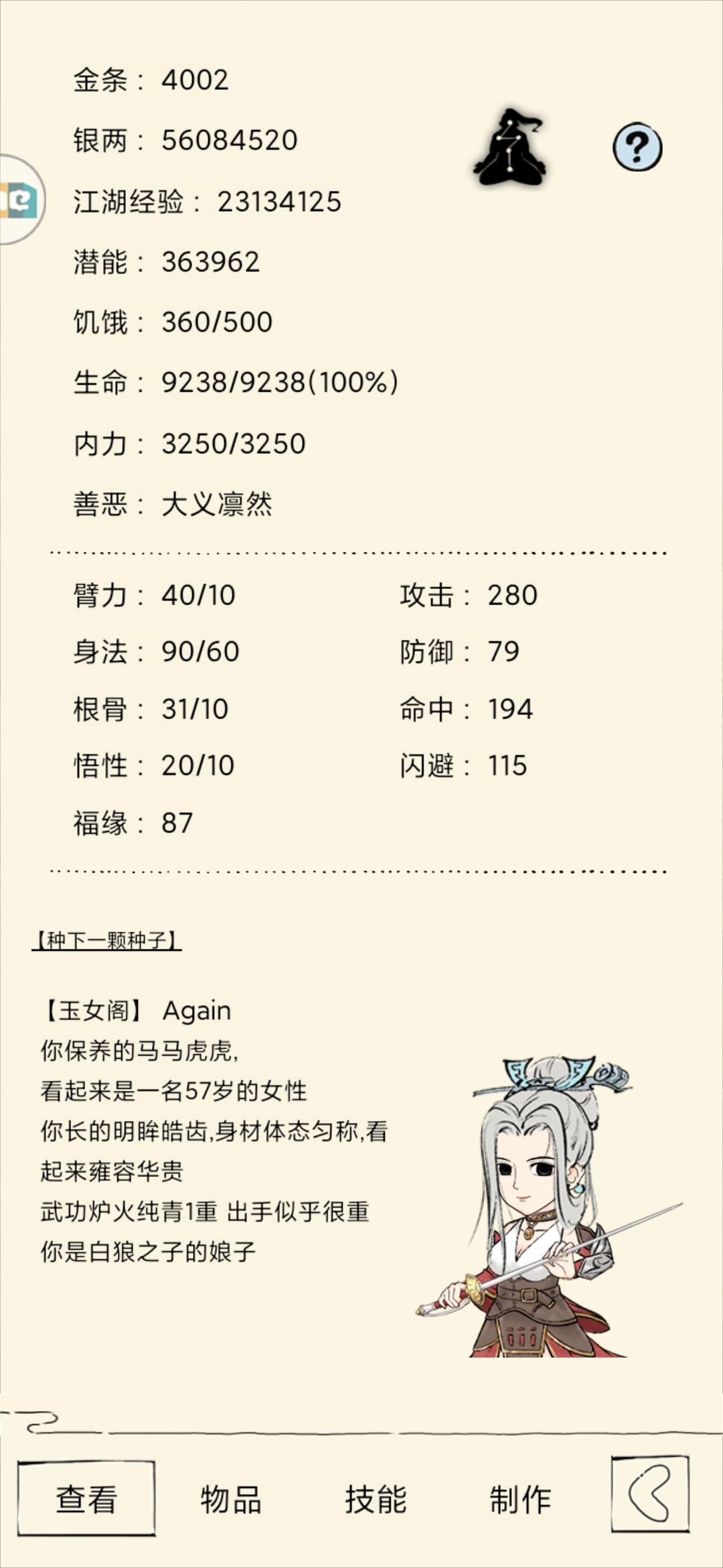 未轮五毒,用的五毒内功跟轻功,玩的是金蛇掌,全身穿的是炉火套,熊猫人存了300,金蛇奶奶存了10个左右,四级五级毒有三十多个。打了半天打到53层打不过了....