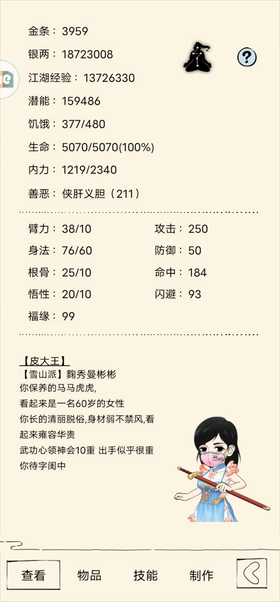 大佬们,未轮真元10w,五毒出师去逍遥,现在一个门觉没拿,我接下来是去拿了门觉轮回呢,还是熬熬25w一轮混地狱顺带再拿个真龙(一轮想玩八音)ps:乌金套已经做出来了。武器也洗好了。丐帮好感度也刷完了。真不知道该咋办