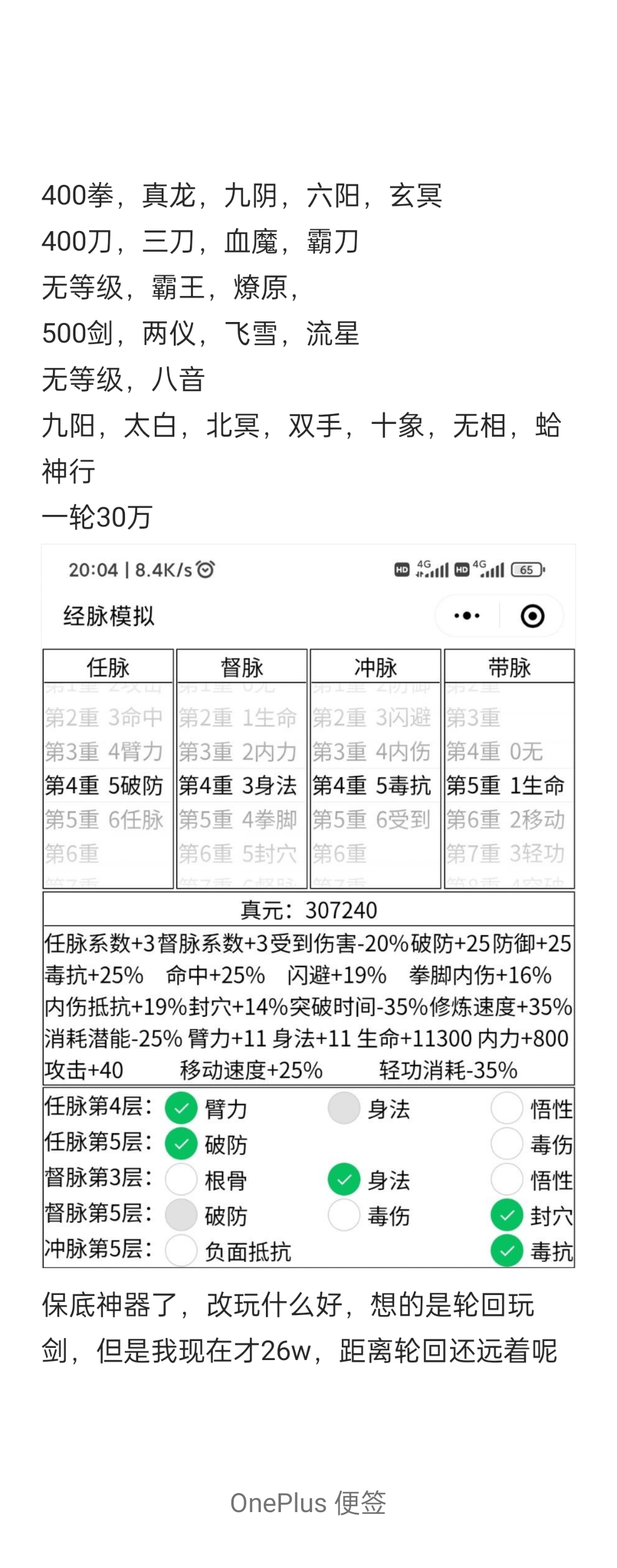 大佬们,一轮准备转霸刀,经脉这样点可以不?