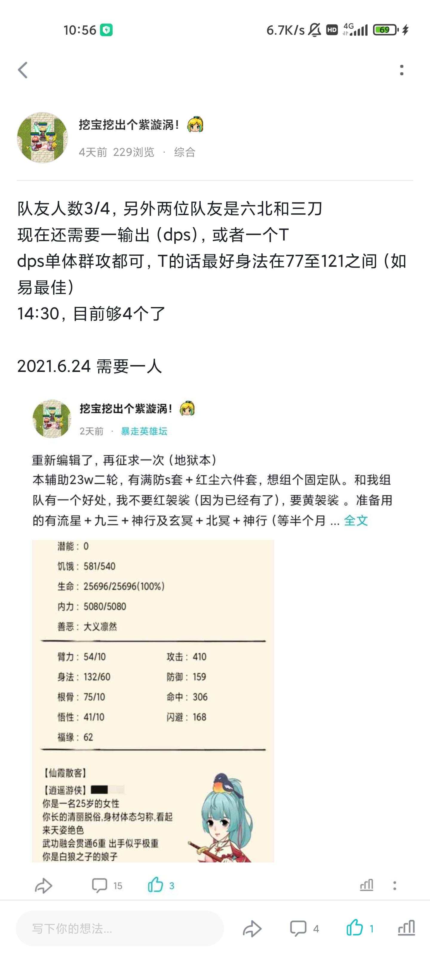 由于其中一个队友退游了,现在3缺一已有30w+两个霸刀 50w+一个真龙如来一般都是晚上9点后开始