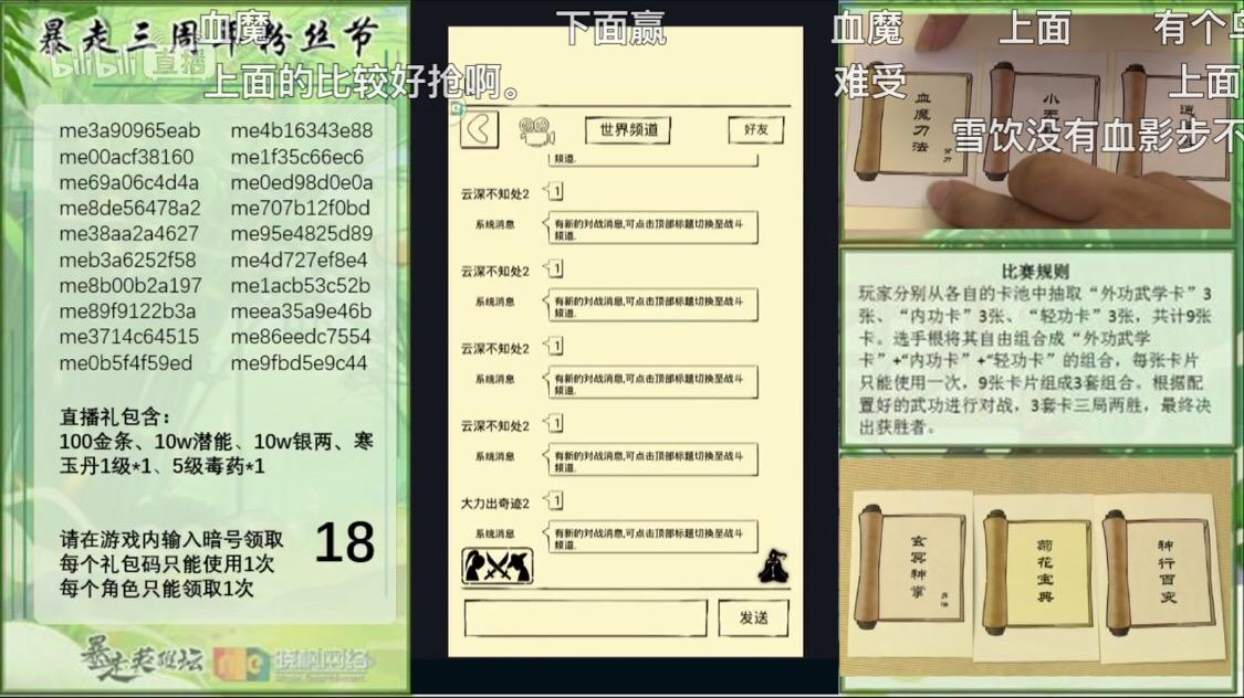 根据心理学来讲,现在正是抢礼包码的好时候,开头很多人抢不到都放弃了,准备在直播快结束的时候抢,所以快结束的时候人会更多,想要礼包码的快行动吧P.s.不要抢四个角的码,挑中偏上或偏下的