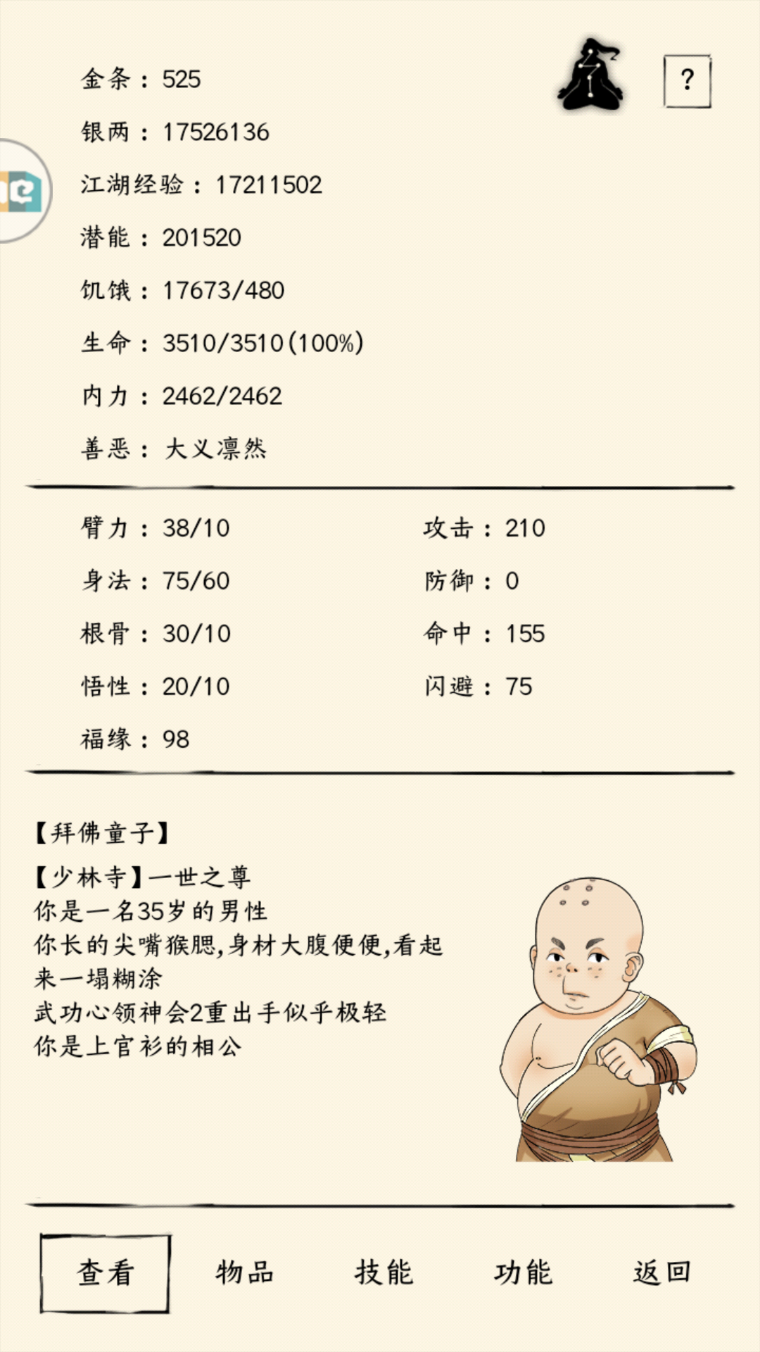小凤凰送的10组,加上自己买的10组,成功上50。面板是少林身法狂风,250刀,200内(易筋经只有150),150轻。6、7层连续出甲(算欧还是非啊),神器拿刀、棍,罗汉棍打斧头帮,谁用谁知道。buff有毒伤、破防、伤害、生命、身法,一个仙酒,两个刀片,三个零食。30,34有青蛇,一边吼一边砍死,37凶狠的柳如是,用了一个五级毒。40层以后,看情况用活动送的3级或者5毒。44还是多少有个强壮