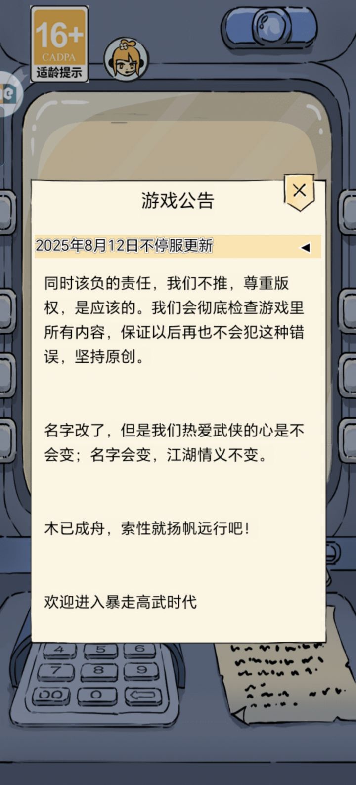 官方自己也承认都没想到这游戏能活这么久,为暴走感到悲哀,我们是可以不因为名字改了影响对武侠热爱的心,那你得有一个现在更换名字后武侠的环境,背景呀,知道为什么金庸先生的武侠世界能引起大家的共鸣吗,主要是武侠融入历史的背景,有故事有话题才能长久,你要是能把李狗蛋的故事编圆满了,把你这些人物和武学背景介绍清楚,形成暴走英雄坛的世界,这个游戏才能不断给你带来收益,多花点心思吧,这个世界编好了周边什么的也可