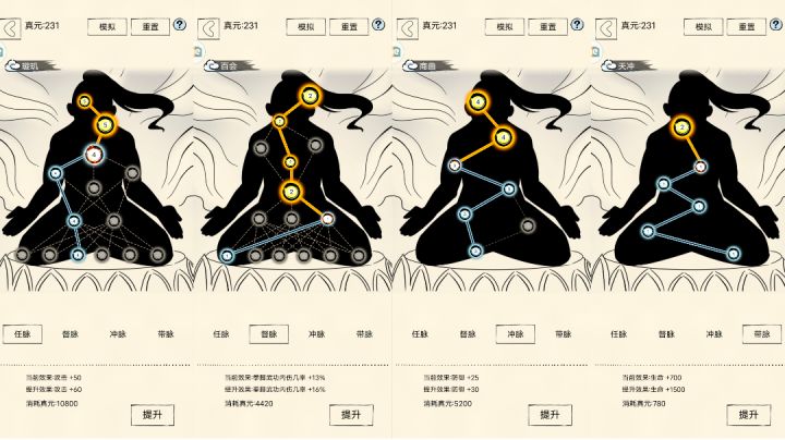前言:关于轮回的基本事项,咱们tap tap已经有佬写了非常完备的攻略,我就不画蛇添足了。而本帖讲的是不同轮回次数的真元安排,以及经脉加点攻略。先给萌新讲一讲,我们为什么要轮回?轮回的作用,就是把当前所修炼的全部武学等级转化为真元,并按照0带脉0悟性计算当前的基本等级,按照当前世代历史最高悟性进行等级的继承(有点复杂,萌新可以大概理解为你的主基本功法、基本轻功、基本内功在轮回后会降低50~7