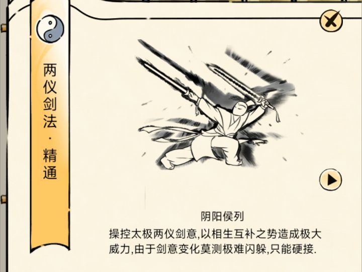 两仪剑法是兼具强度与机制的悟性剑法绝学特点:伪先手,招架反击、剑灵真伤。以下从获取方式、领悟机制、搭配策略到发育思路进行全面解析(偏主观,多处细节尚有不足):一、武学获取与基础条件 1. 获取方式: -需突破太极剑至309级以上触发奇遇任务,突破等级越高概率越大。- 推荐时机:在有两仪概率提升的活动期间突破,必须满福源,有狗牌最佳。 - 学习条件:300级太极剑、200读书识字、20