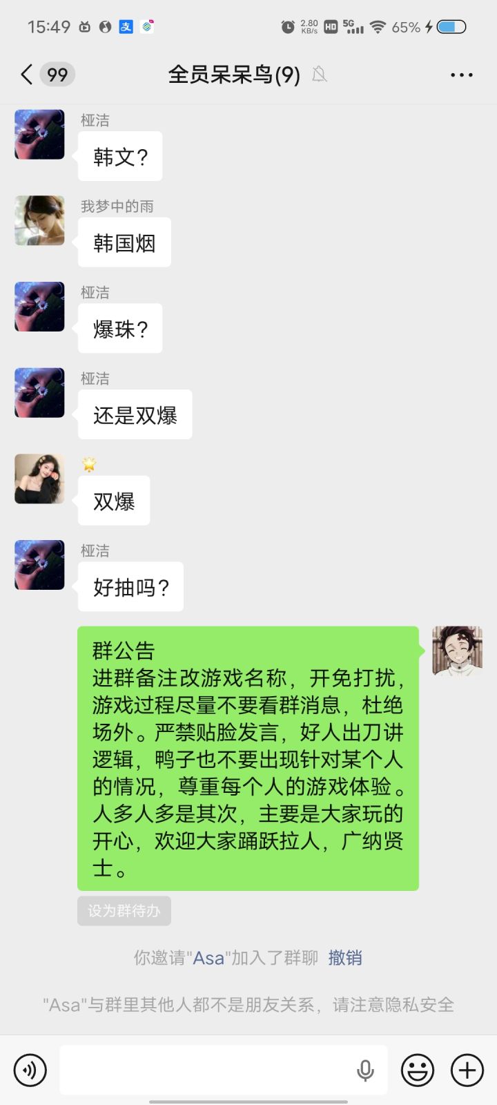 鹅鸭杀,目前6人,要求不高,成年/素质/心态好即可,游戏不会可以慢慢玩,玩久了就是高手了,发言时候不哄抢,别的规矩没有,怎么玩都行,有意向的关注私信我