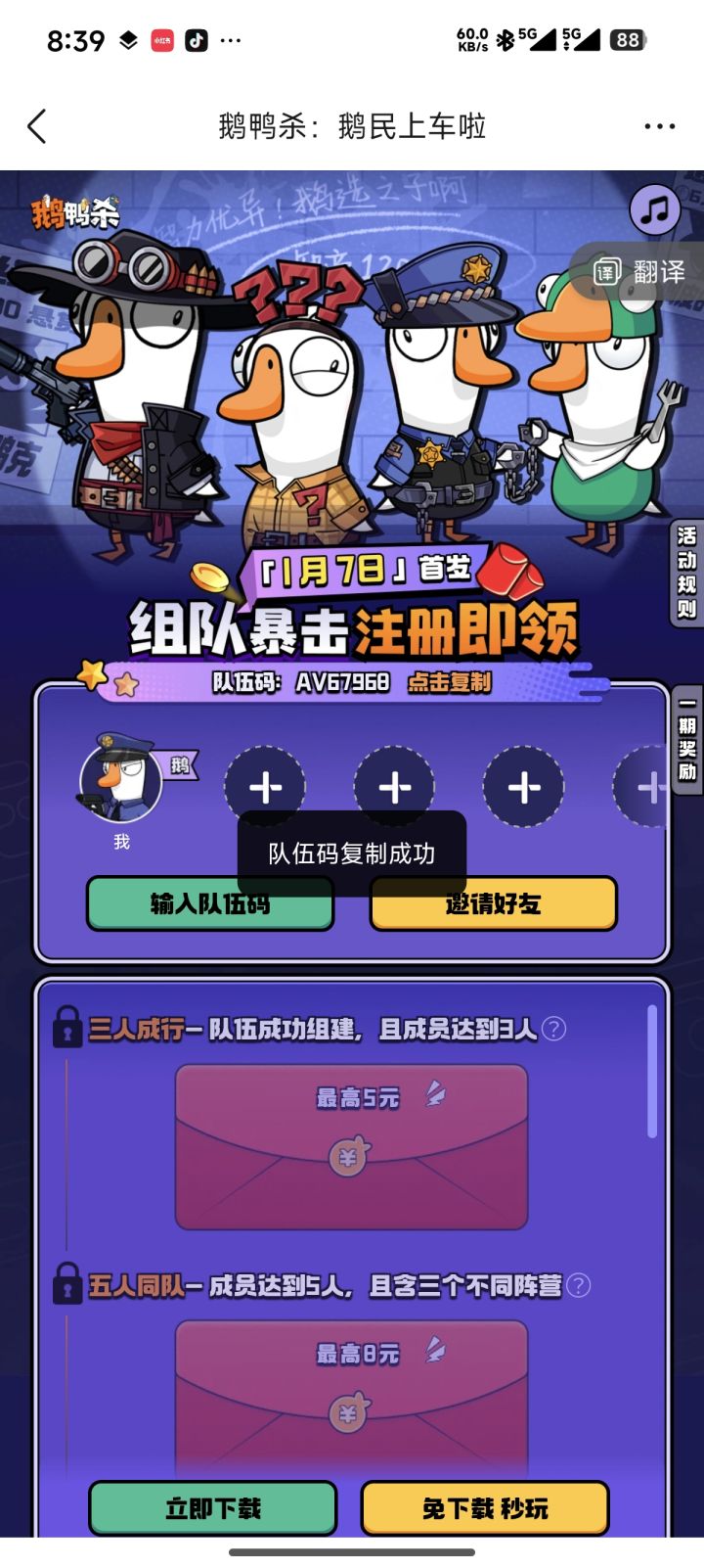 #邀请码#鹅鸭杀 Q7C5XFZ好心人绑一个吧,我自己会抽皮肤