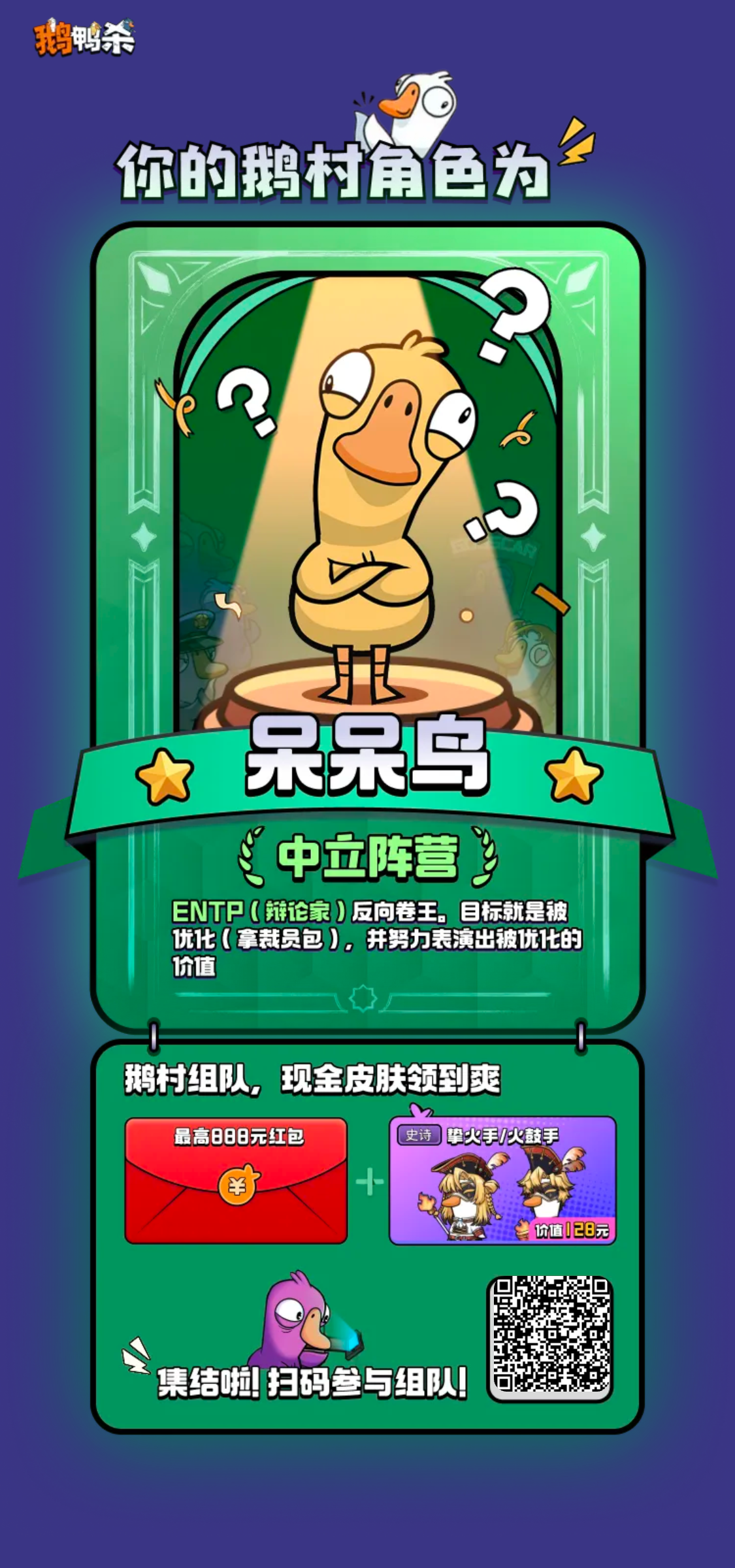鹅村集结-暴击红包皮肤大礼https://cdn.yyb.qq.com/mole/app-activity/goose-goose-duck/index.html#/?team_id=HW50082&channel_id=yyb_topview