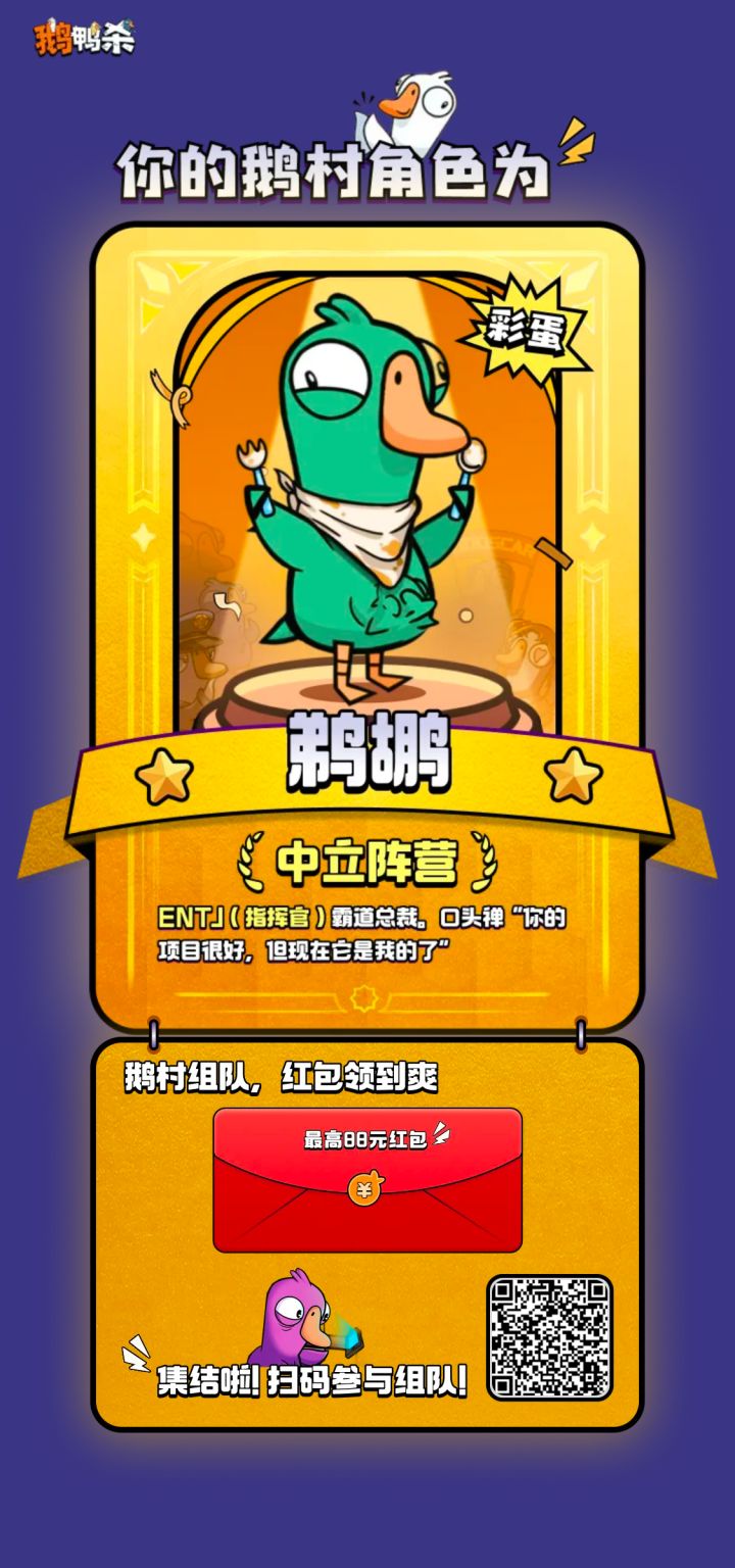 鹅村集结-暴击红包皮肤大礼https://cdn.yyb.qq.com/mole/app-activity/goose-goose-duck/index.html#/?channel_id=&team_id=SM84235