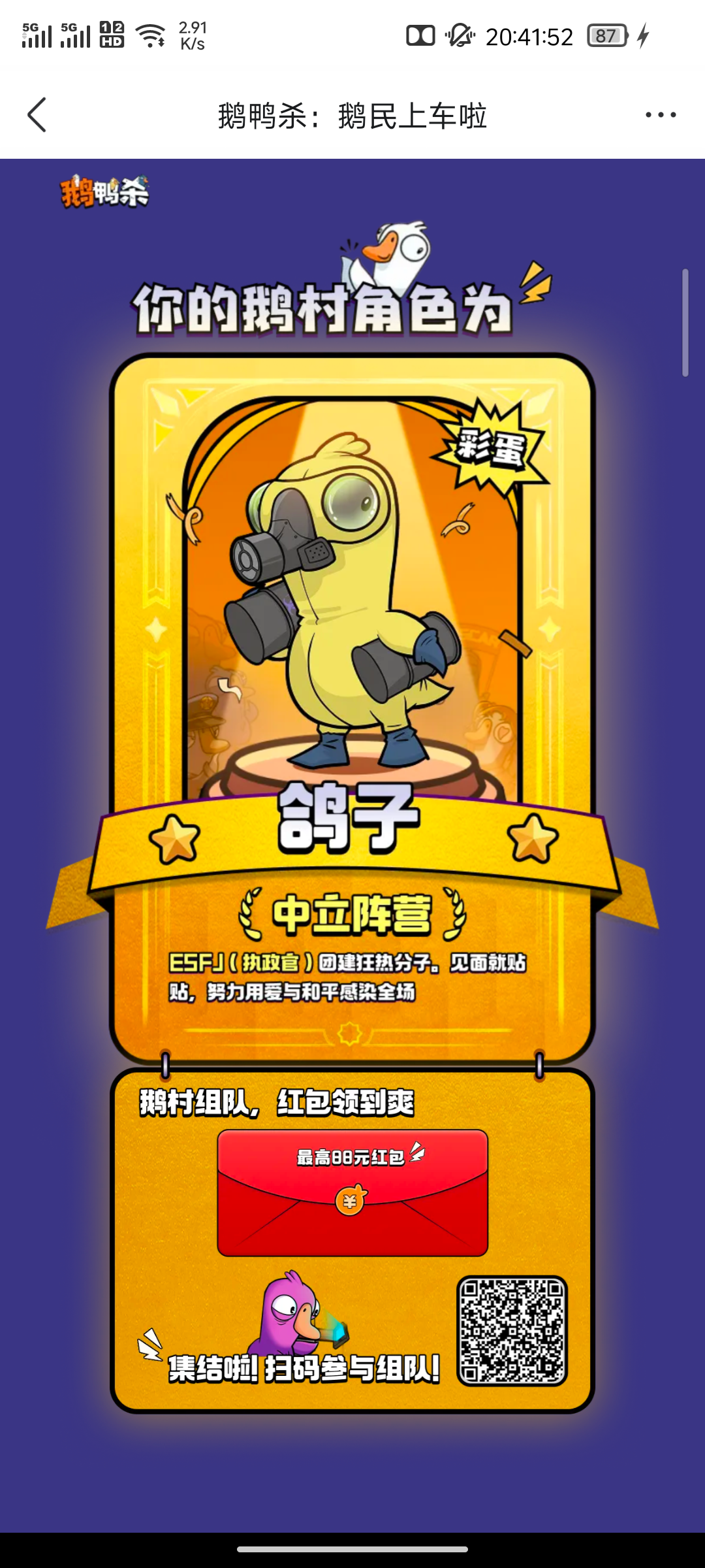 组队来,TP37813鹅村集结-暴击红包皮肤大礼https://cdn.yyb.qq.com/mole/app-activity/goose-goose-duck/index.html#/?channel_id=guanwang&team_id=TP37813