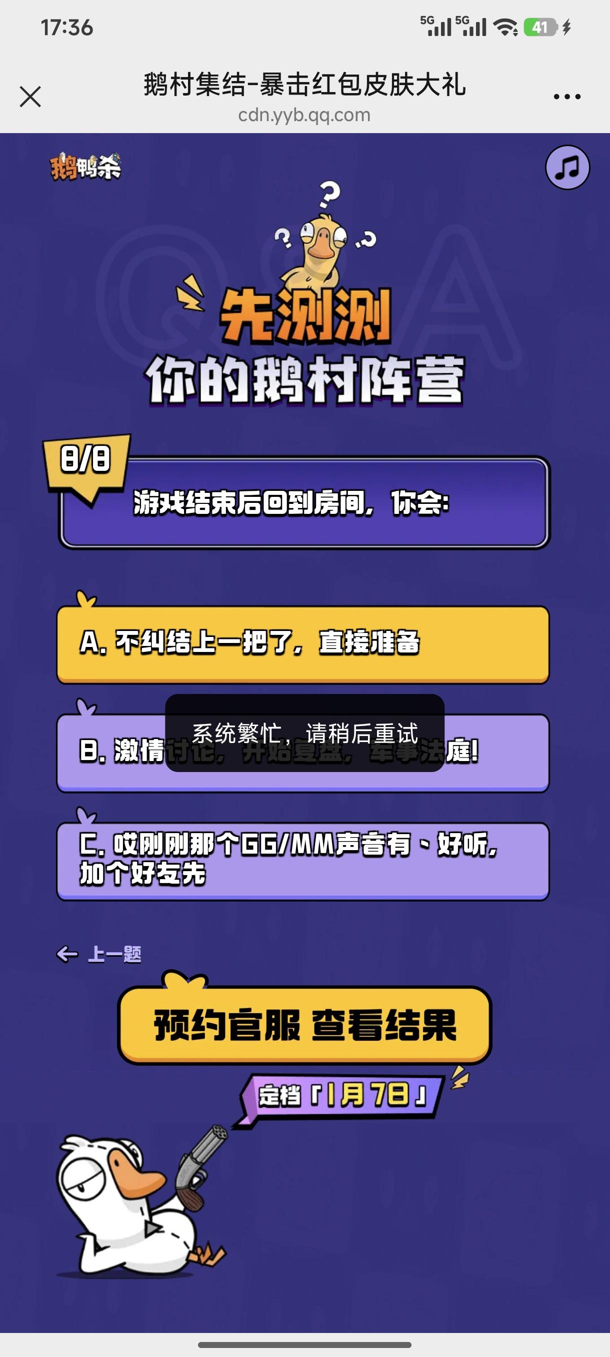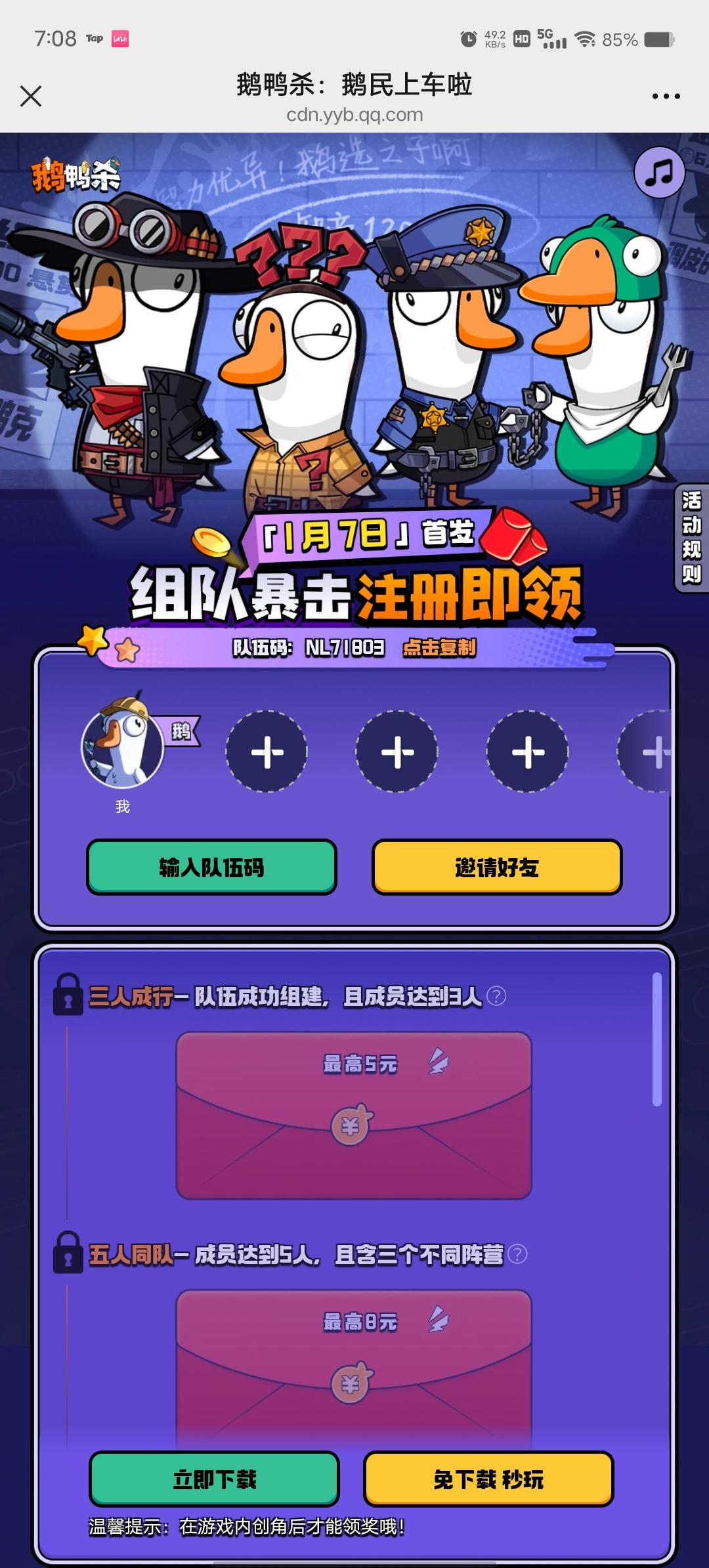 鹅村集结-暴击红包皮肤大礼https://cdn.yyb.qq.com/mole/app-activity/goose-goose-duck/index.html#/?channel_id=guanwang&team_id=HF05626&is_gold_user=false&role=1003&bypass_redirect=1