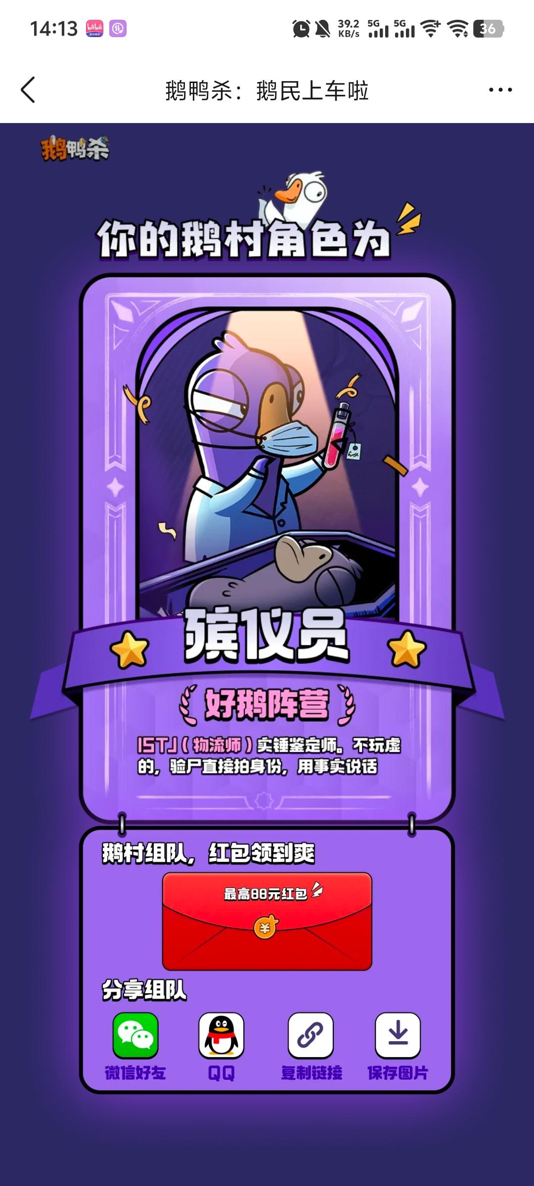 鹅鸭杀领红包,队伍有金卡保底