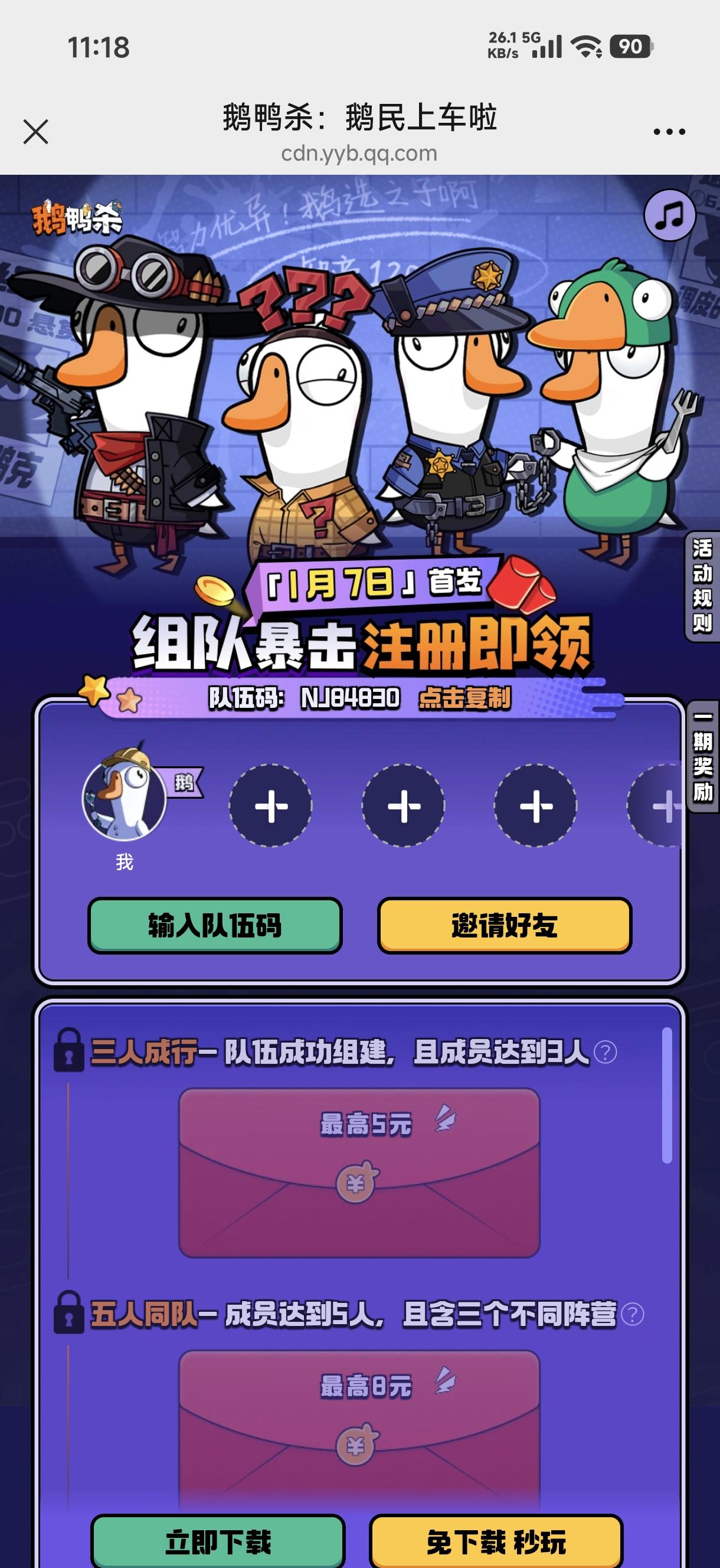 鹅村集结-暴击红包皮肤大礼https://cdn.yyb.qq.com/mole/app-activity/goose-goose-duck/index.html#/?channel_id=xiangqingye&team_id=NJ84830