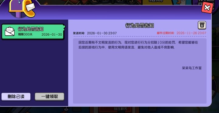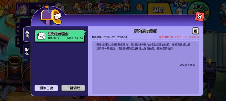 在对局中阵亡后一直附在别人身上观战,游戏结束后还显示这个禁止发言。都结束了还禁止干什么#