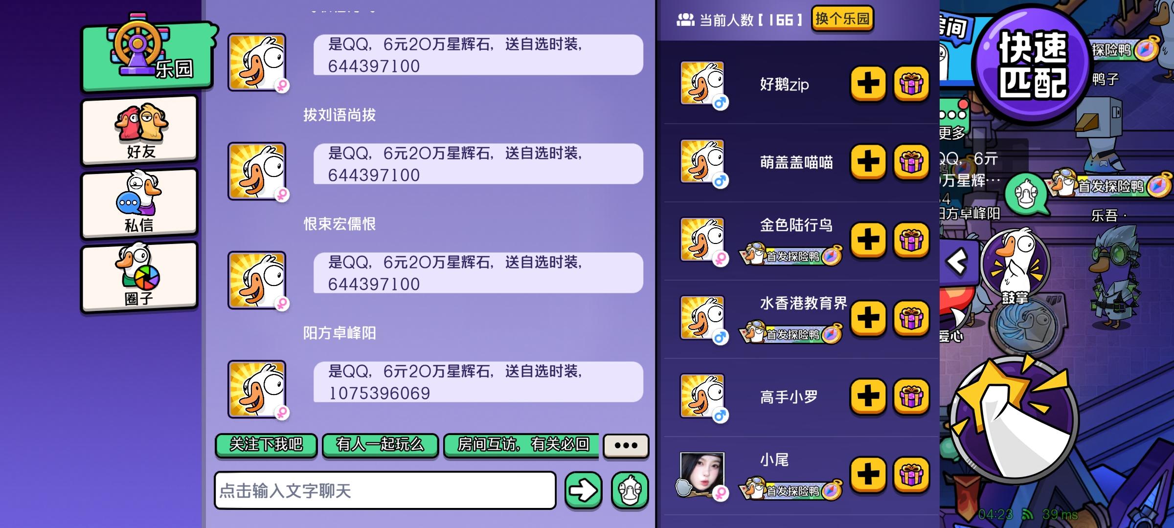 做不好就别端上来,开服第一天一直炸服,莫名其妙还被扣十点类似信誉分,开服的奖励基本上是一个没有,抠门策划扣死你算了,那些掉线的人还一直放广场上,卡的一批#鹅鸭杀
