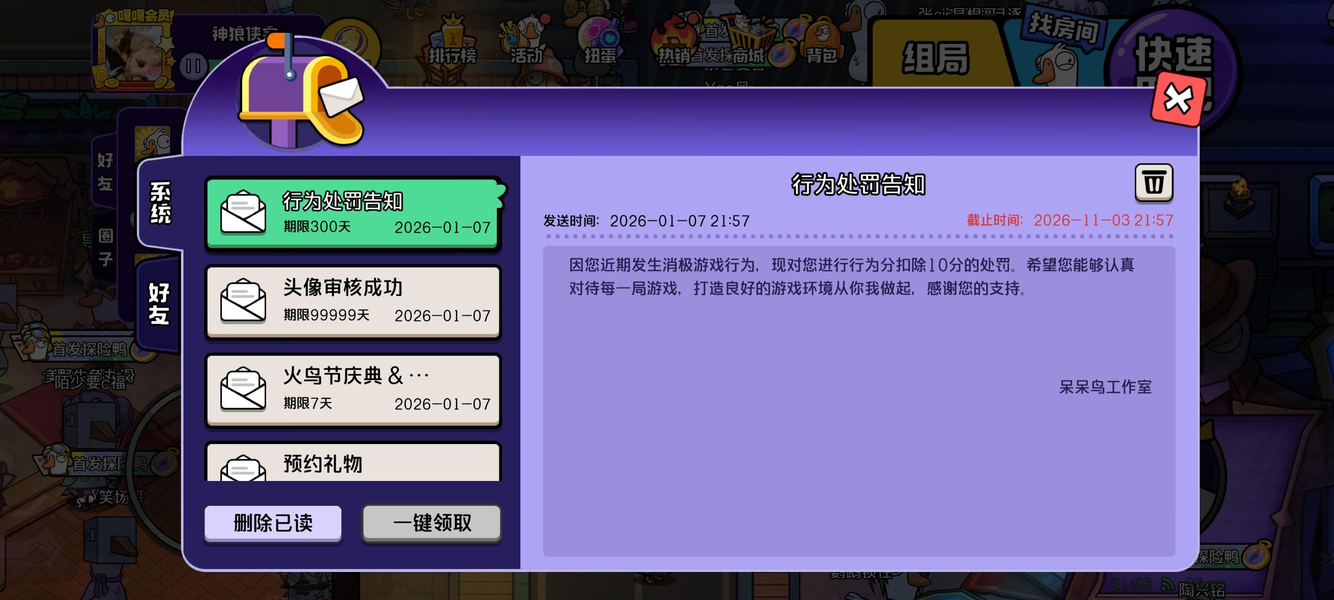 官方这对吗?把我踢出服务器,然后等我重新上线之后告诉我消极游戏,然后给我扣了10分