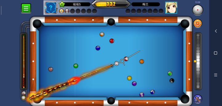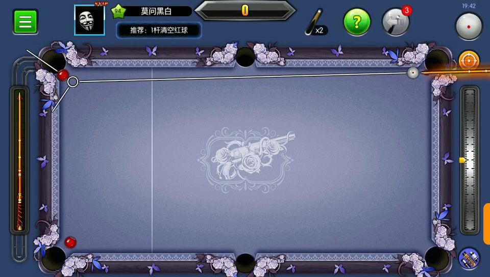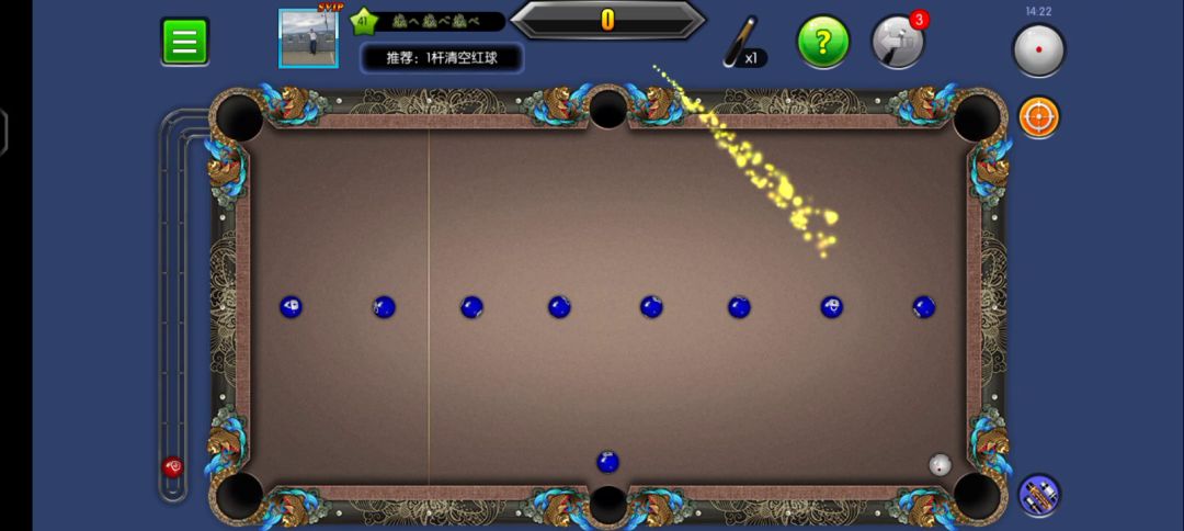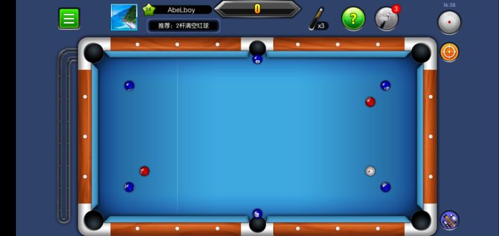 瞄准是台球中最基础的一个动作,也是关系到是否连杆的重要保证,试想,如果你连准度都做不到,那要如何完成一场绝美的清台呢?现实打台球中,为了保证瞄准的准度,在姿势上有一定的要求,在台球帝国中也是如此,最重要就是三点一线,即袋口,瞄准线的指向,目标球的中心要在一条线上,所以我们需要将手机或平板举起,使视线与屏幕平行,尽量看到这三个点在一条直线上,这时准度就有80%了。如果你上网查台球攻略,我想你能看
