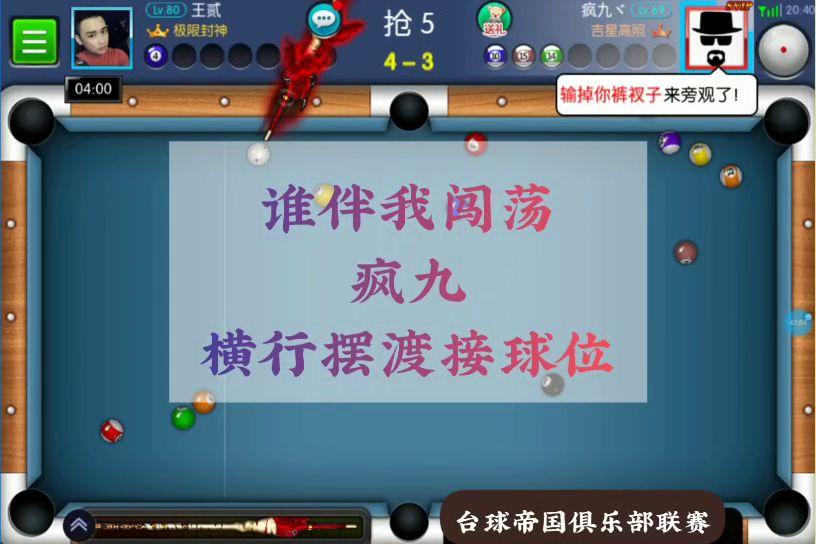 这是冠军之路国际邀请赛的第一个关卡,这个关卡就比较简单了,每次对准绿球,拉来一点分离角去把另一边单独的红球k进去就可以了。如果有过不去的解谜关卡在下面留言。
