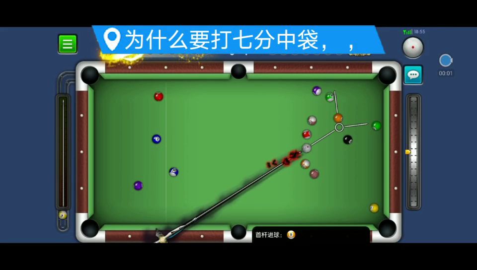 七分打中袋,是为了撞跑15分,以便最后击打黑八更容易,你想到了吗?