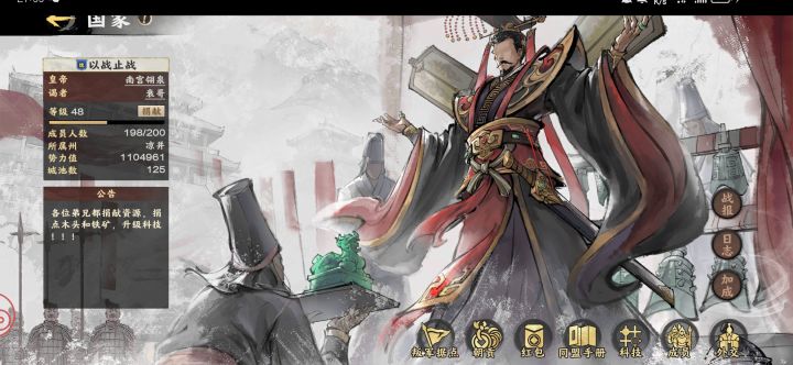 兹尔我盟,号曰以战。以战止战,铸剑为犁。回首曩昔,战事纷起。敌盟清风,侵略如火。天下三分,已据其二。凉并疲敝,内出邪佞。幸赖天佑,兄弟齐心。内攘奸凶,外拒虎狼。破关攻城,斩将夺旗。立国曰魏,大兴西北。先夺司隶,再破江汉。敌势难成,土崩瓦解。十月十七,问鼎江山。万众一举,洛阳先登!呜呼,洛阳一日花万锦,止战解甲告功成。——秦汉34服 北海令