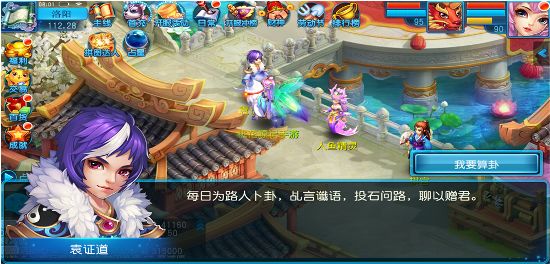 每日算卦,乩言谶语,投石问路,聊以赠君。 【任务时间】全天【领取地点】神都洛阳袁证道【任务要求】角色等级>=15级【任务规则】1、角色每天有一次算卦机会;2、 卦象品质有绿、蓝、紫三种,品质越高的卦象奖励越丰厚;3、 算卦时还可获得卦象特效,对其他玩法有增益效果。【卦象特效】福泽周颐:灵兽培养时,有概率资质翻倍(不突破上限),有最高生效次数。风火家门:师门任务获得经验提升,有最