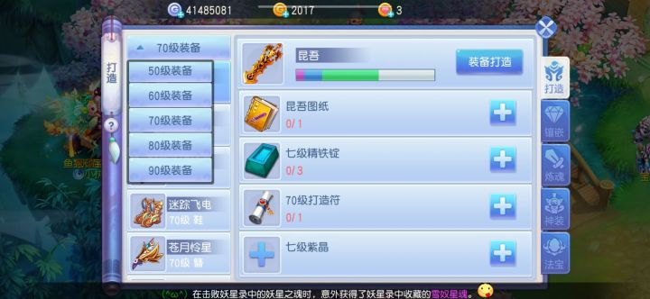 投稿@【文工团】翩翩凡人.(本攻略纯属个人玩法总结观点,非代表官方)万物无非我造,异质殊形皆妙。我是翩翩凡人,一个行走的攻略小渣渣。游戏最基础的提升,也是战力提升最快的方法,肯定是打造系统。接下来,给大家分析一下整个打造系统的方方面面。打造系统目前分为:打造、镶嵌、炼魂、神装、法宝。【①】打造游戏装备根据功能分为武器类、防具类和饰品类,品质共分为白、绿、蓝、紫4种。游戏里大家追求的装备,无