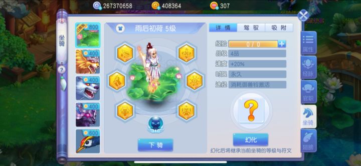 投稿@【文工团】小迷弟(本攻略纯属个人玩法总结观点,非代表官方)哈喽,大家好,我是小迷弟,最新推出了一个四品的荷叶坐骑,一下子俘虏了绝大多数玩家的喜欢,可是也产生了许多的问题,今天我们就来聊一聊坐骑那点事儿。品阶的重要性大家都知道在桃花源记坐骑是有品阶的,从一级到五级,那么他们中间究竟有什么差距呢?1.性格不同品阶的坐骑性格等级不一样哦!而坐骑的性格,可以说是宠物非常关键的一个实力增强