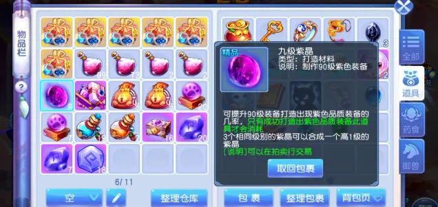 小氪氪吖又来喽~今天向大家传授“如何打造出紫简装备”。好啦,不要废话啦,我们直接进入正题喽~很多人都是辛辛苦苦攒了一大堆金币,然后一顿狂点,一看简易全没有!在这里就不得不提一个道具——【紫晶】想要获得紫色简易,那么必须保证紫装的出货率。使用紫晶配合打造,能够大概率的提高我们获得紫色品质的装备,所以说这个一定不能少,一般来说它的价格是非常非常低的,毫不夸张的说,基本上达到10桃一个。我这里说的