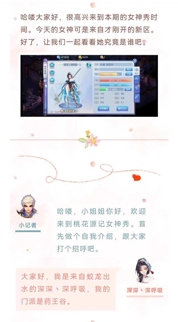 哈喽大家好,欢迎来到本期名人堂。今天我们邀请到了桃花最强玩家——十里桃花的【八荒】小记者:哈喽,大佬你好,欢迎来到桃花源记名人堂。首先做个自我介绍,跟大家打个招呼吧。八荒:大家好,我是来自十里桃花的八荒。小记者:百闻不如一见,终于让我们迎来了桃花源记第一人。毋庸置疑,八荒大佬肯定是全满中的全满,动辄百万的投资让人瑟瑟发抖。一份付出一份回报,不得不说如今的大佬绝对是桃花第一人,据我了解,你一直