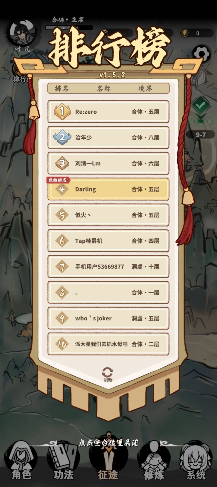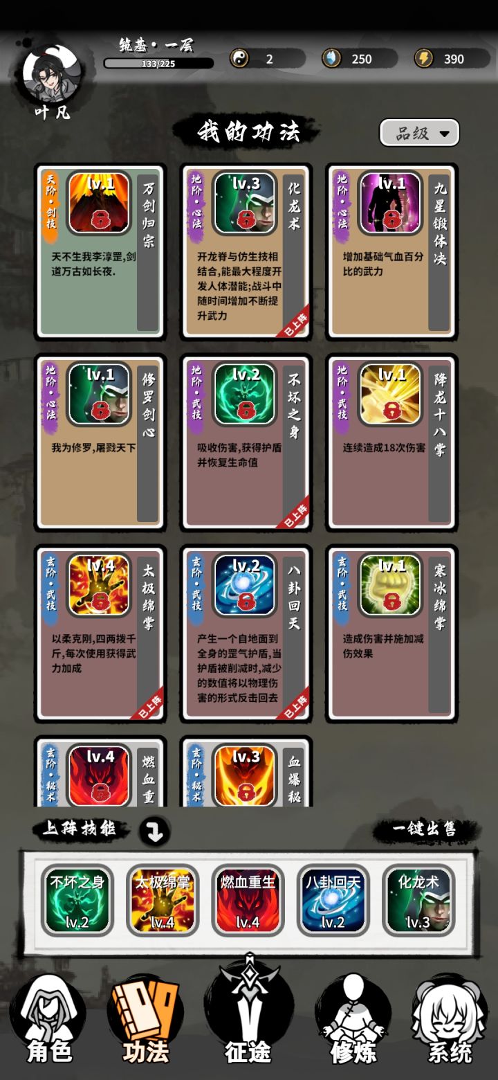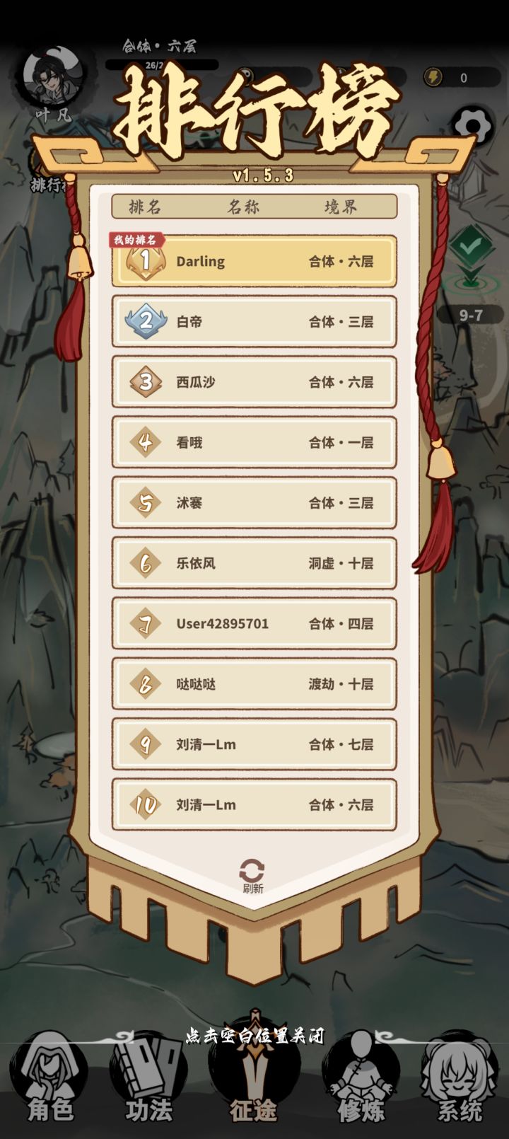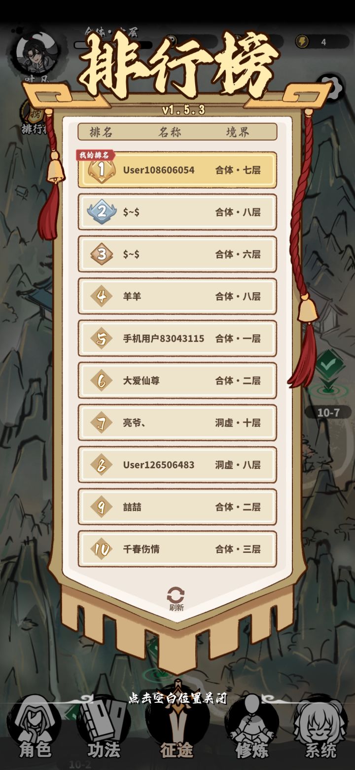 剑修秒杀流,修罗剑心+锻体+无极剑法固定,6,8,9章加血爆秘术固定,其它2个技能看怪技能上就好了,打排行榜是因为丛刃秒人好用,所以我把其它输出技能删掉了,剑修秒杀真的不要太爽,主要的还是无极剑法秒人。不过我还是喜欢体修乌龟流,无奈太弱了!希望快快增加更多玩法,真的好喜欢这个游戏