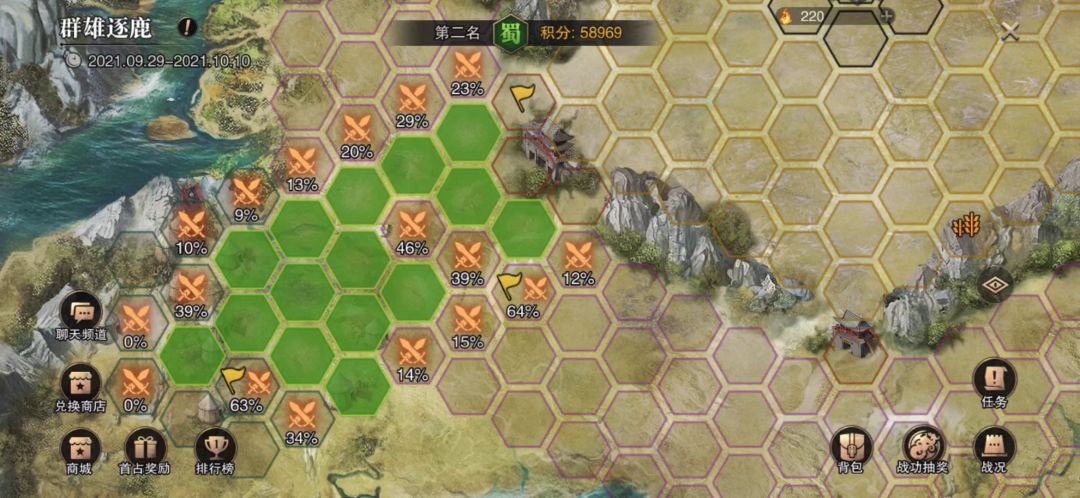 泡沫之里+12048084+天之轩杰+沙盘活动攻略 个人铜币最大化攻略:只打高分区域,比如太古,提前准备好器械和工具,一开马上进去打几波。打旗子所在的区域,与战团成员组队都有铜币加成,实现铜币收益最大化。 团队积分最大化攻略:团队的积分主要来源于占地,首次占地能获得积分,占地成功后还能产生持续的收益,所以要尽可能多占地、尽可能多占领高分区域、尽可能早占地。这里就需要指挥官把旗帜插在合适的地方,引导游骑兵讨伐,避免百花齐放的情况,例如蜀国早期就是百花齐放,很多区域没到100%,进度都浪费了。 进入内圈后想要阵营排第一,那就要多占领高分区域,还要打压其他阵营。