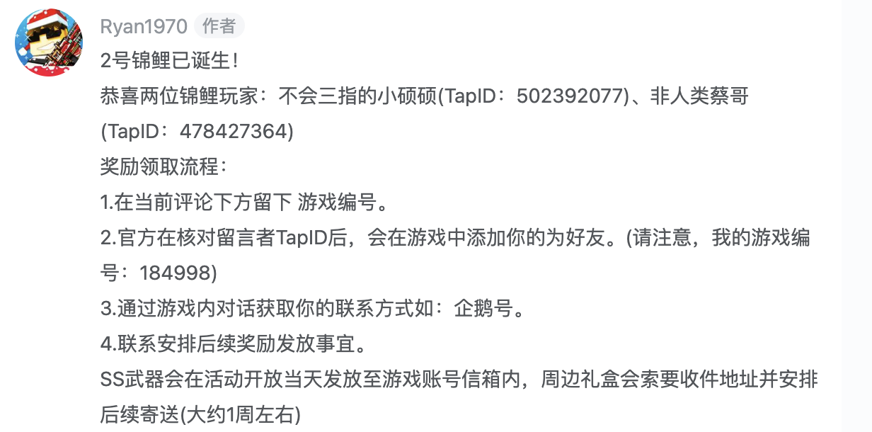烦请2号锦鲤同学“非人类蔡(帅)哥”,去原帖置顶评论下方,按流程留下游戏编号~
