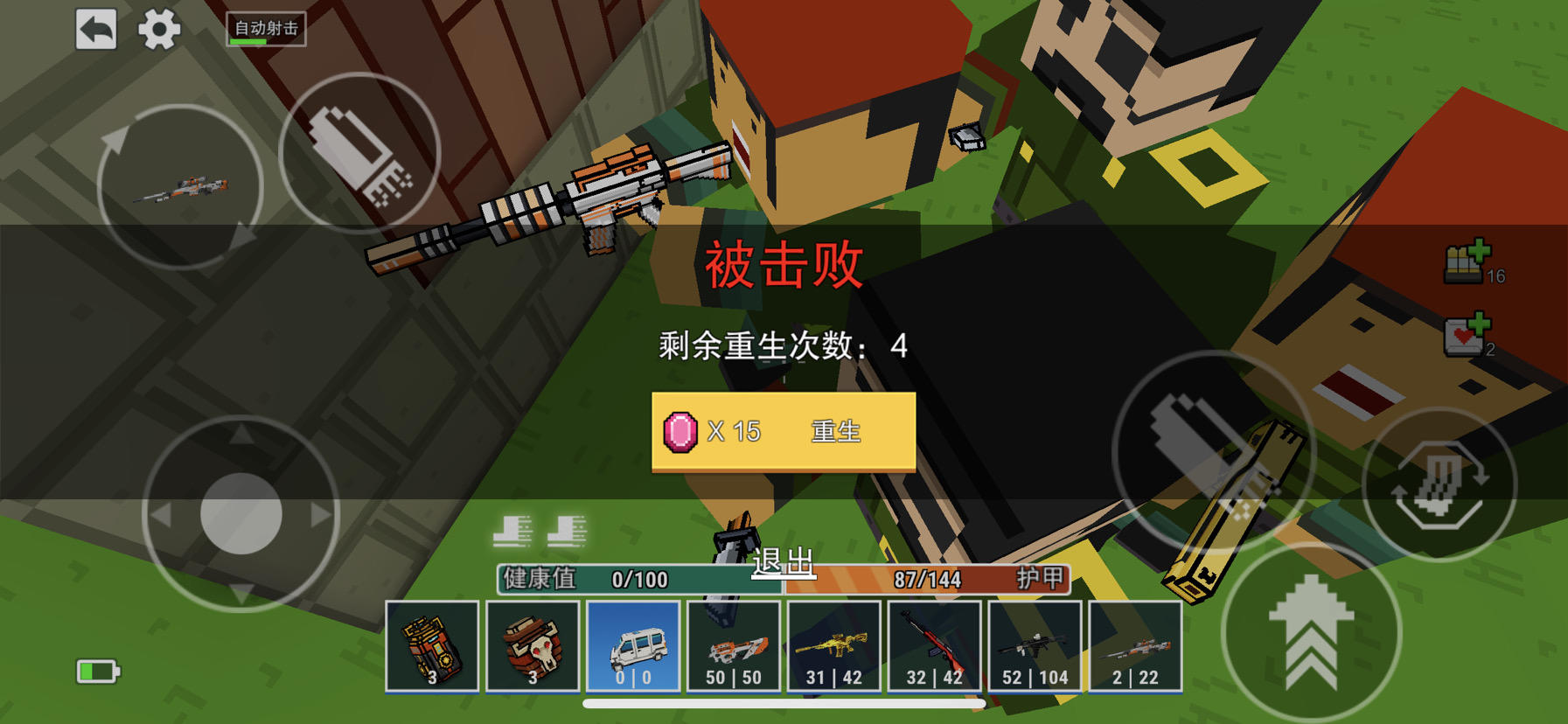 故事模式里被打死后就卡在了这个界面了点哪个按键都不行还有就是我在被打死前一直用不了右面的血包和弹夹好像是在弹夹收集到16个之后就没反应了顺便问一句:以后故事模式能不能加一个敌人剩余数量提示?不加的话太麻烦了