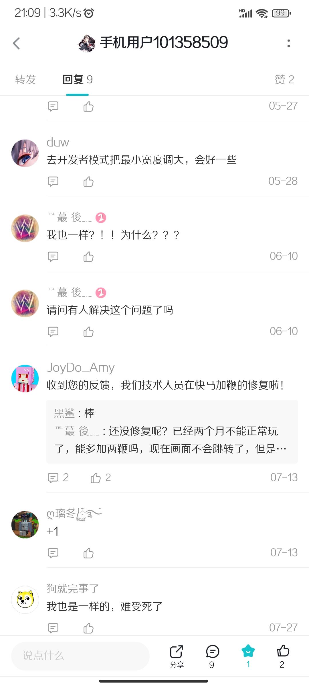 官方来解释下好吗,这个bug反馈了几个月了,一直没修复,是让我们换手机呢还是退坑呢?给个说法啊,到底修不修复,何时修复?每次更新都充满希望然后失望😥@JoyDo_Amy