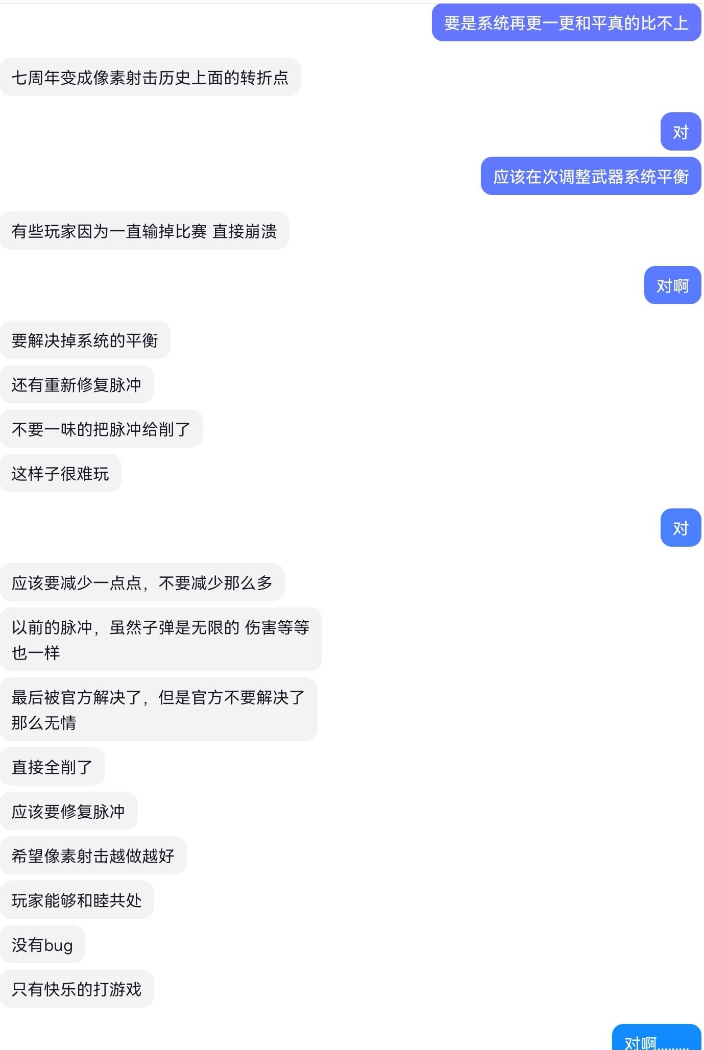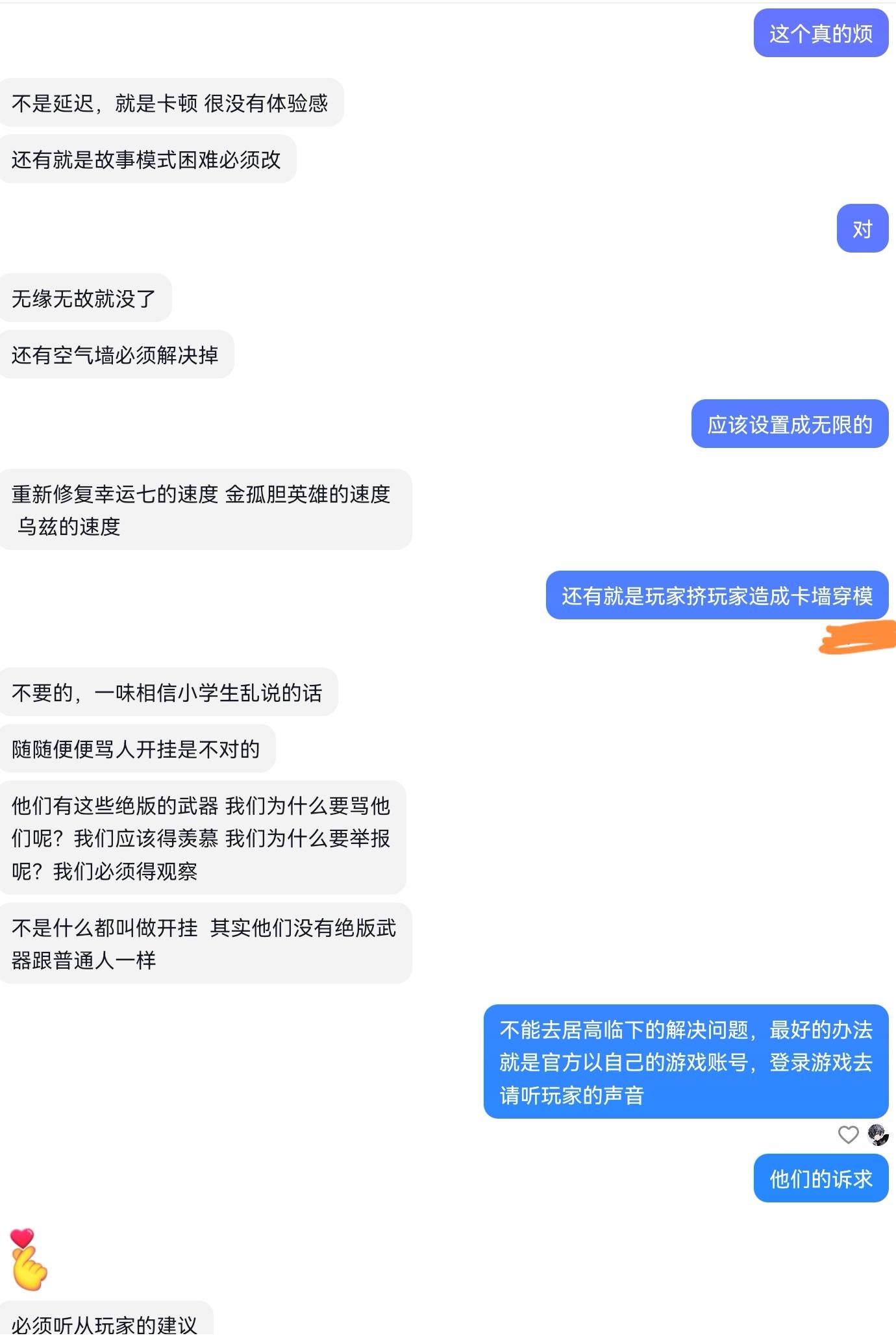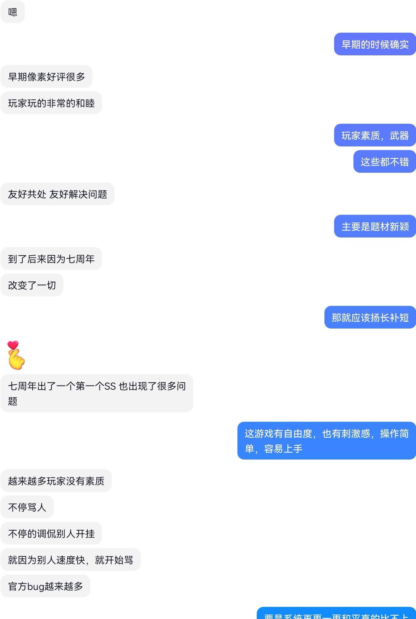 官方我就想不明白了,你管什么聊天功能啊,就算游戏里有些人确实素质非常不好,但你也不能下架这个功能啊,你可以想和平精英一样,让玩家来帮助审核举报,这样你只用分析这个玩家的活跃程度和前科就能知道他能不能胜任,同时可以对这些帮忙的玩家进行奖励,这样子,全服的素质不就上去了吗?😭😭